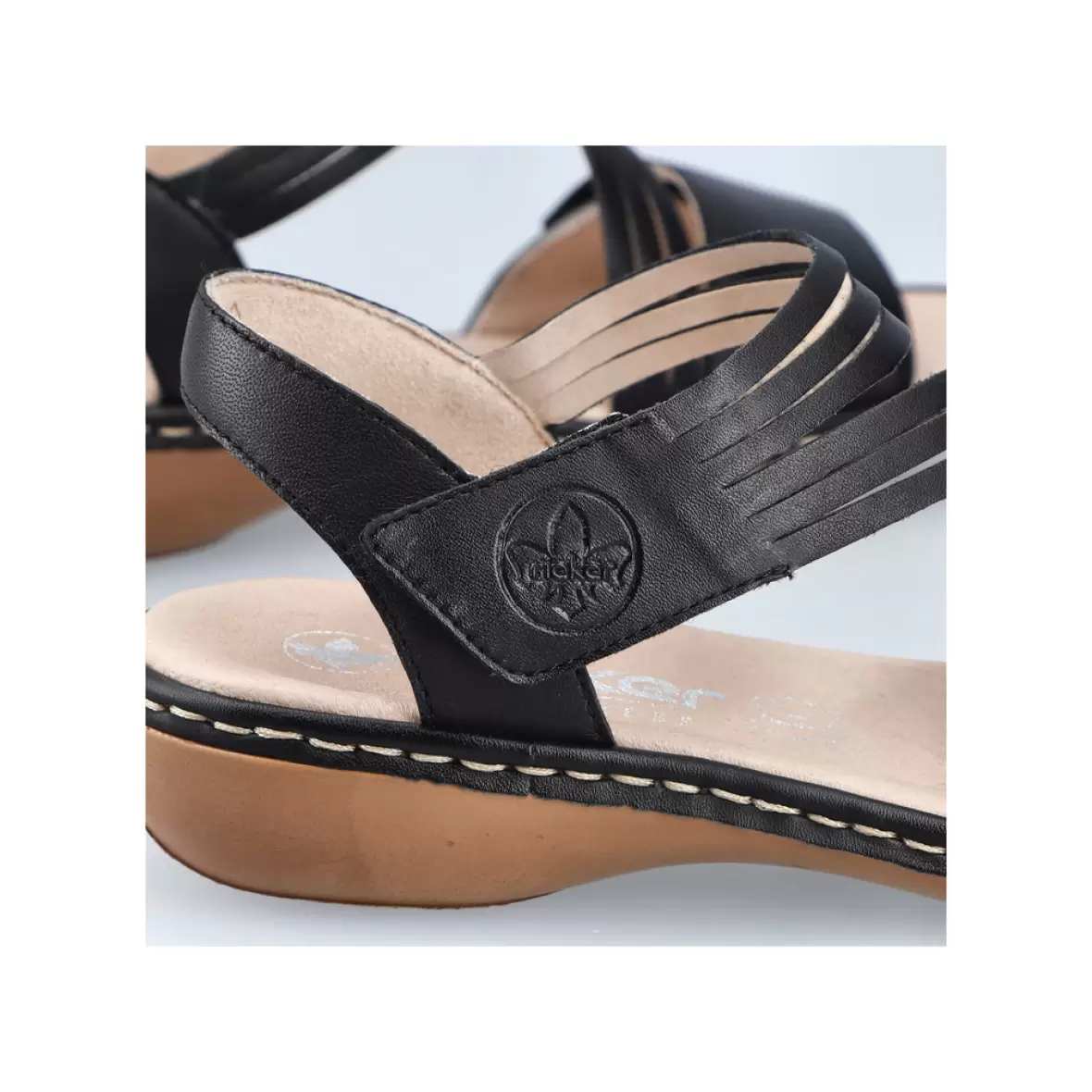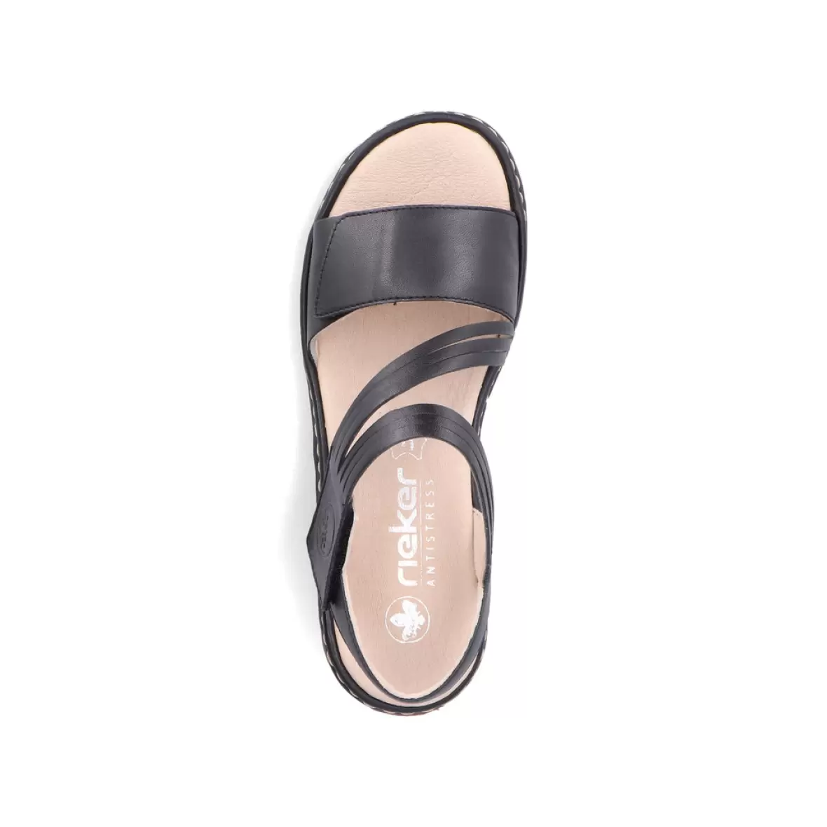 Art. No. 65964-00Rieker 65964-00. Disse sandaler er designet i en klassisk sort farve, hvilket gør dem alsidige og nemme at kombinere med forskellige outfits. Stropperne krydser foran og giver et elegant, men stadig afslappet udtryk. Sandalerne har en lav hæl og en kontrasterende syning langs sålkanten, som tilføjer et subtilt detaljeniveau til designet. Den polstrede indersål antyder, at disse sandaler er lavet med komfort i tankerne, en signaturfunktion for Rieker sko. Det ser også ud til, at der er en justerbar ankelrem for at sikre en god pasform. Disse sandaler ville være en fremragende tilføjelse til en garderobe for sommermånederne, både til daglig brug og til mere dressede lejligheder.
