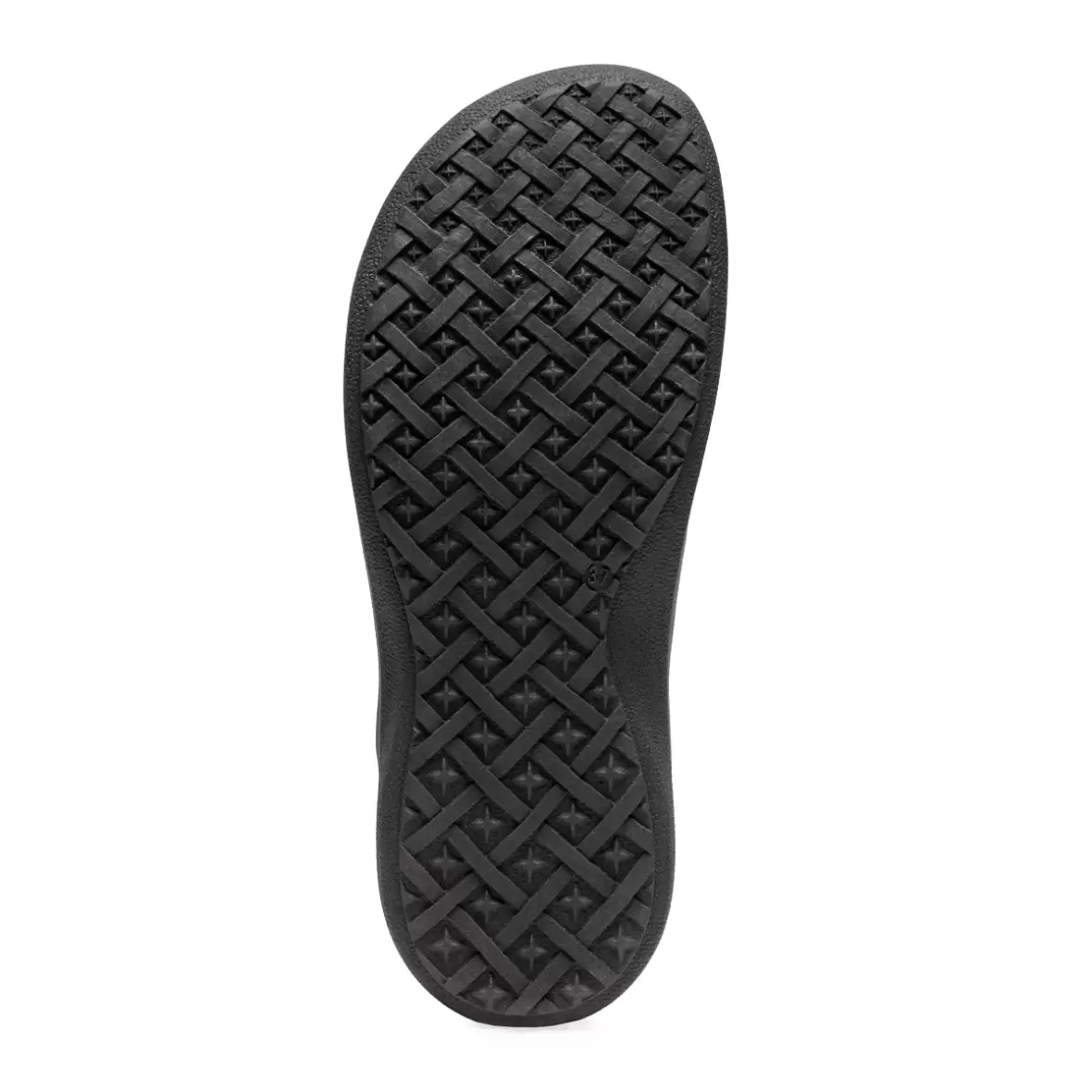 Ydersålen er lavet i TR (Thermo Plastic Rubber), som giver et solidt fodfæste, høj slidstyrke og en let gængefunktion. Denne funktion hjælper med at aflaste foden og fremmer en naturlig og stabil gang, samtidig med at den understøtter en bedre kropsholdning.