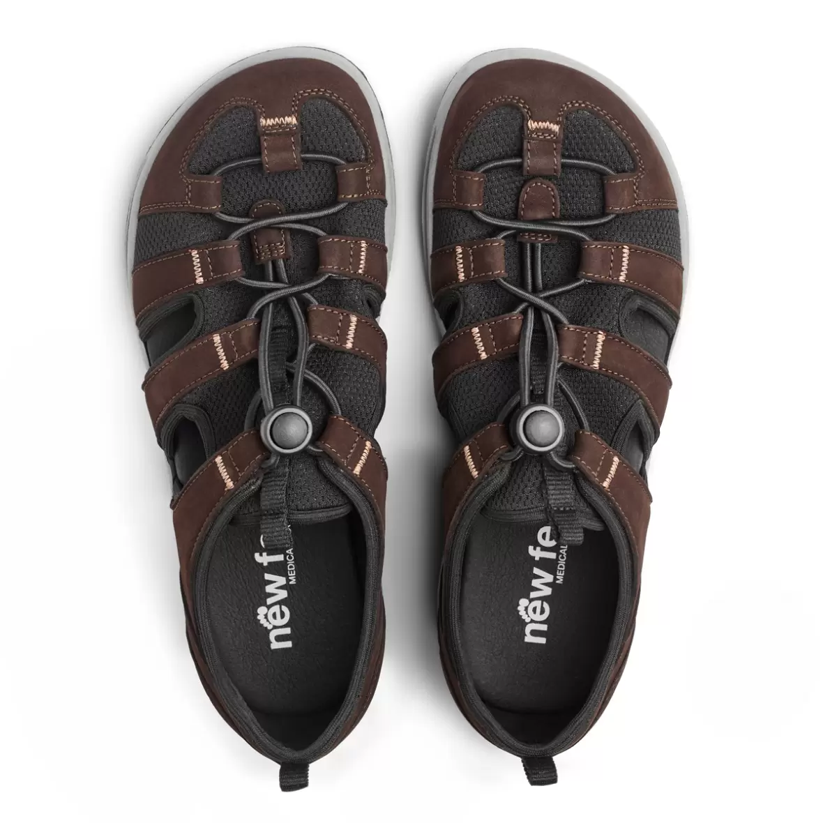 New Feet har udviklet denne sandal i Danmark med fokus på følsomme fødder, gigt og diabetes, og produktionen foregår i Portugal under EU’s miljøstandarder. Skindet er garvet efter gældende regler for at sikre minimal belastning af natur og miljø.