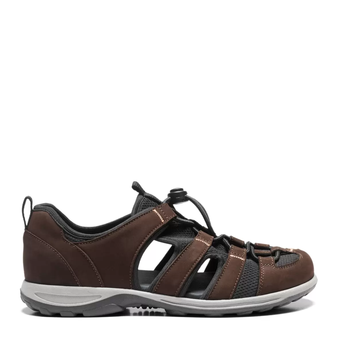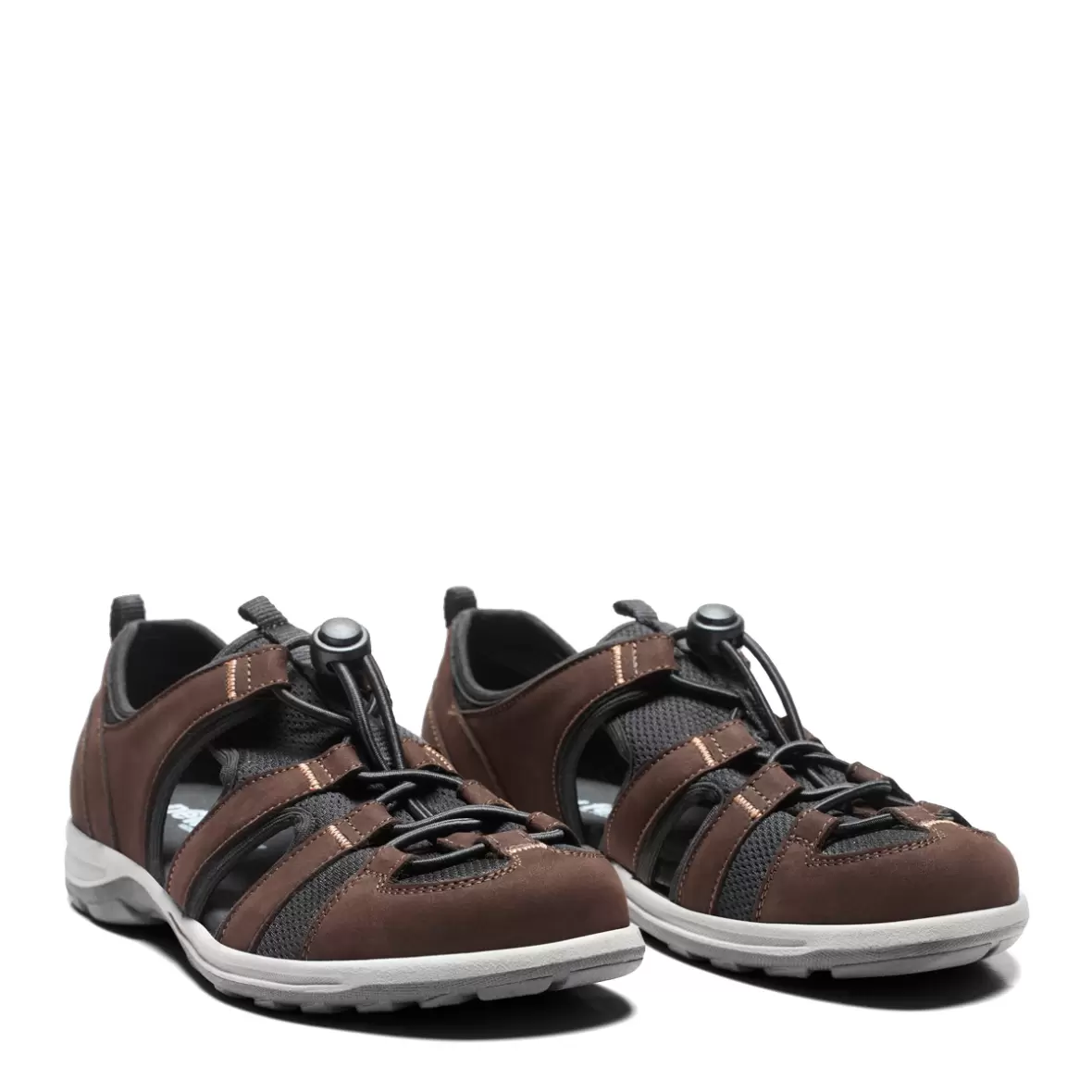 Sandalen er fremstillet i glat læder af høj kvalitet, et slidstærkt og åndbart materiale, som former sig efter foden og med tiden får en flot patina. Indvendigt er den foret med OnSteam® lining – et innovativt mikrofiber-materiale, der transporterer fugt op til seks gange mere effektivt end læder og samtidig er særligt behageligt for følsomme fødder. Konstruktionen er udviklet uden generende indvendige syninger, hvilket gør sandalen oplagt til personer med diabetes eller andre fodudfordringer.