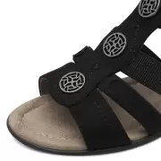 Art. No. 008-28165-42-001Disse elegante sorte sandaler fra Jana kombinerer et moderne udtryk med høj komfort og funktionalitet. Designet med flere elastiske stropper, der sikrer en god pasform, og pyntet med dekorative knapper, der tilføjer et feminint touch. Den bløde indersål og lave hæl gør dem ideelle til både hverdagsbrug og mere formelle lejligheder, hvor komfort og stil går hånd i hånd.