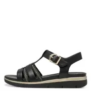 Art. No. 008-28261-44-001Disse sorte damesandaler fra Jana kombinerer elegance og komfort på bedste vis. Det stilrene design med fine flettede detaljer og en justerbar rem med guldspænde giver et moderne udtryk, som samtidig sikrer en god pasform. Sandalen har en blød fodseng, som giver god støtte hele dagen, og den fleksible sål sørger for et behageligt og stabilt fodfæste. Perfekt til både hverdagsbrug og sommerens mere festlige lejligheder.