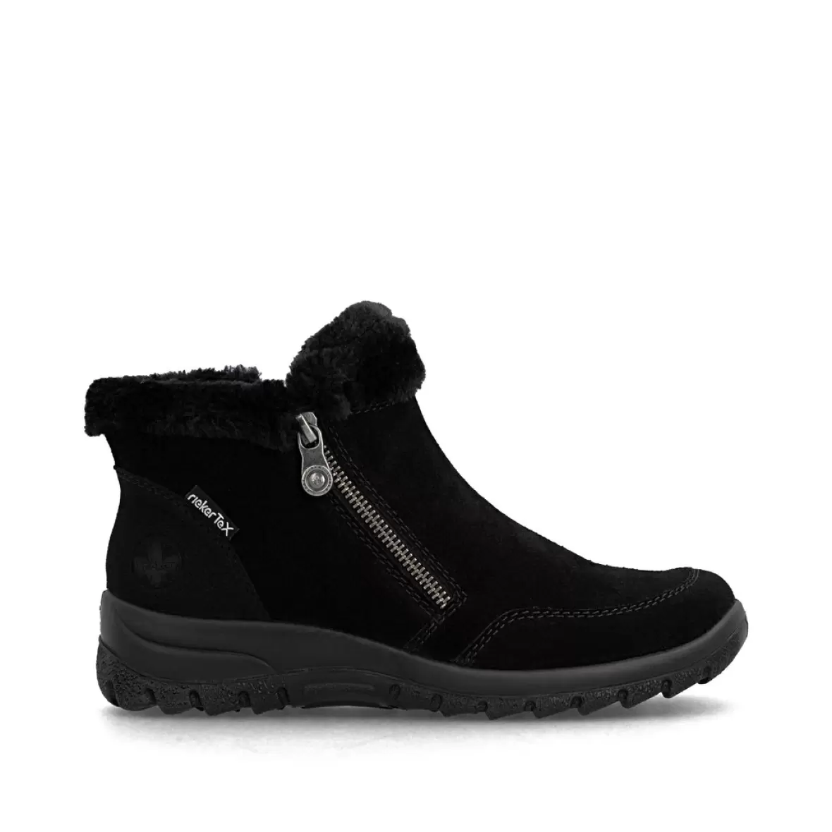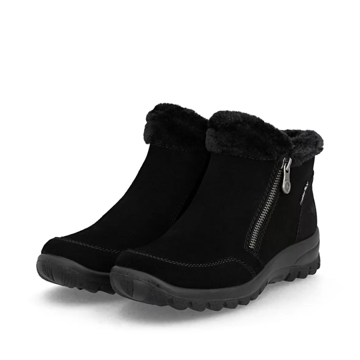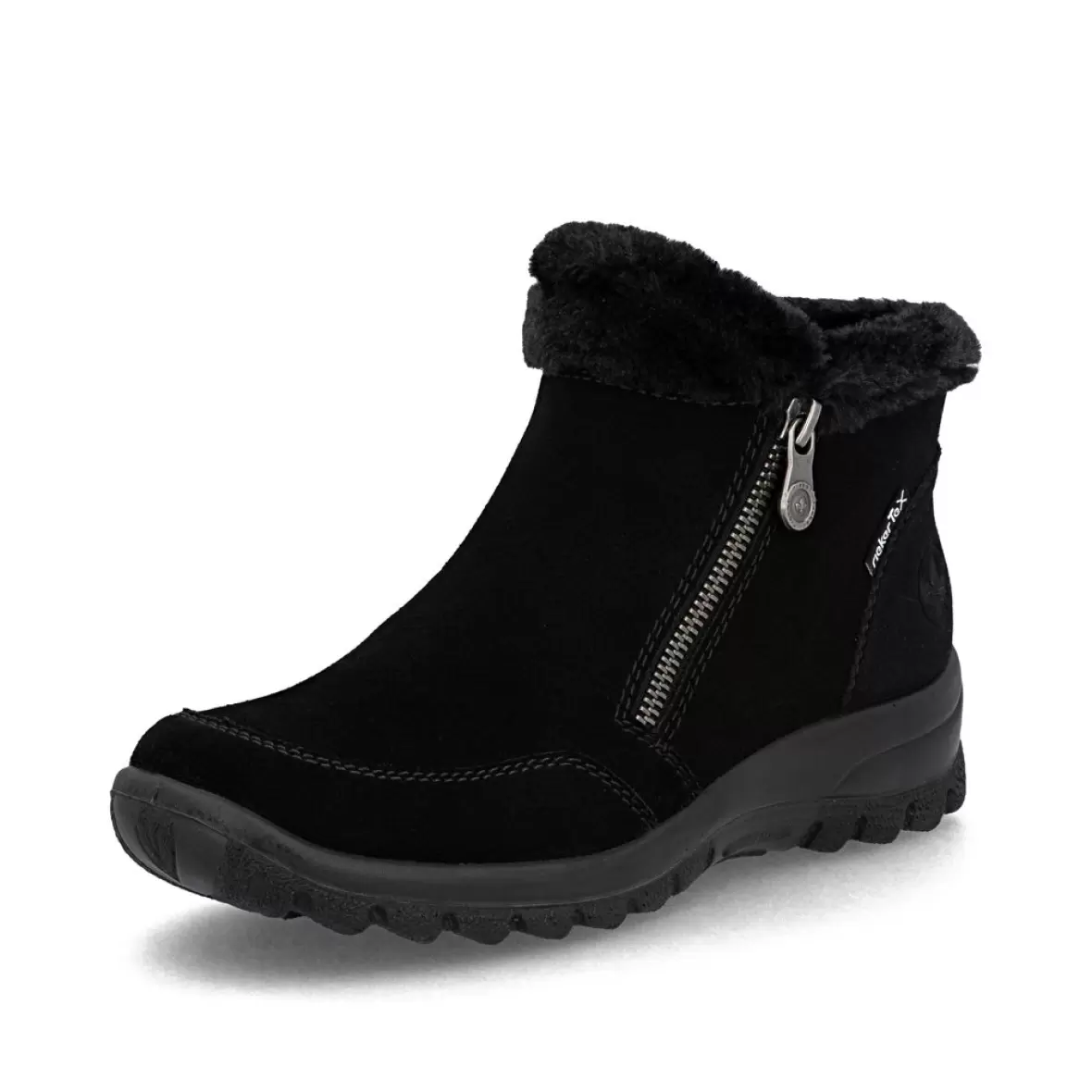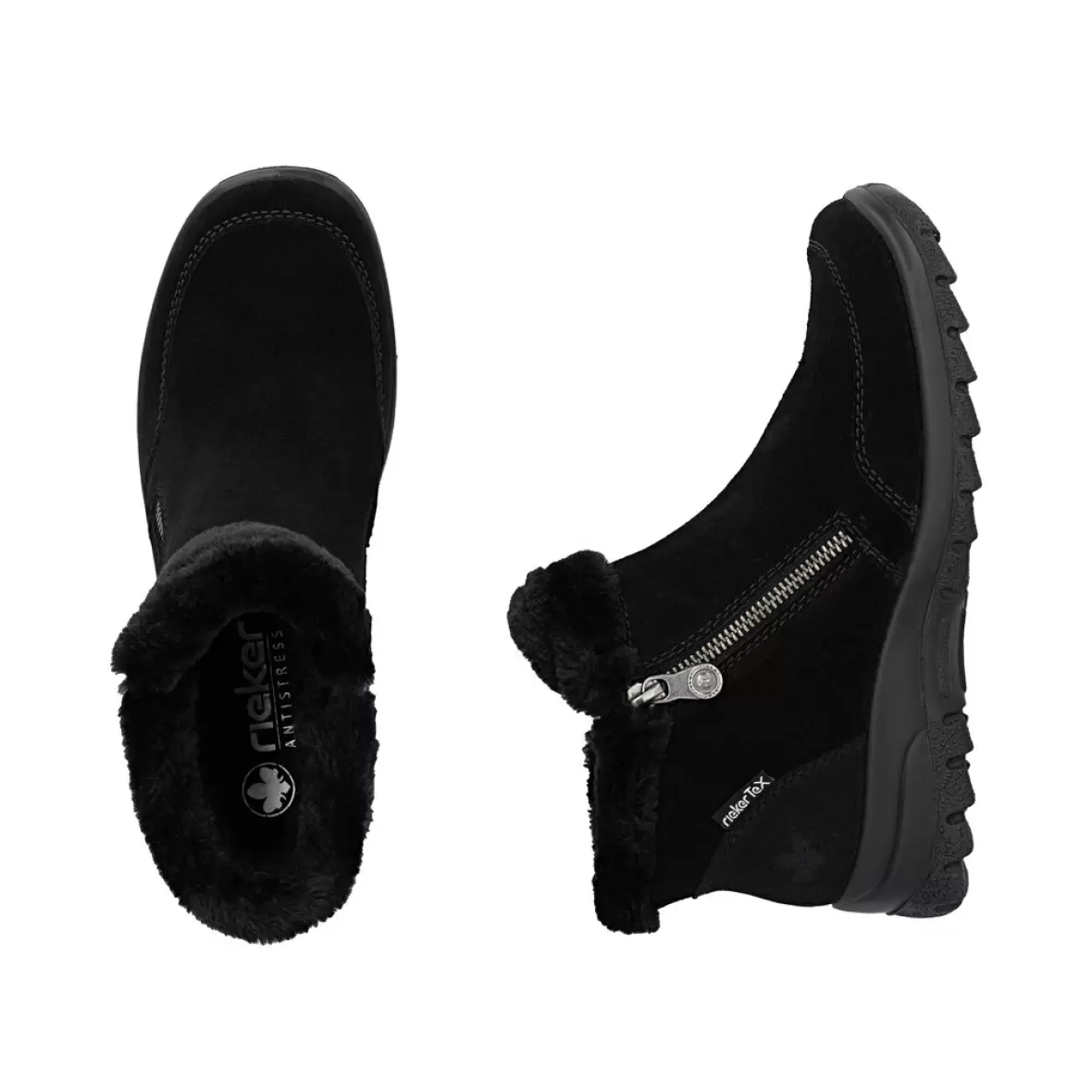Art. No. L7188-00Rieker L7188-00 er en varm og komfortabel damestøvle, der er perfekt til de kolde måneder. Den bløde fleeceforing og pelskraven giver både varme og hygge, mens den robuste ydersål sikrer godt fodfæste i vinterføre. Støvlen er let at tage af og på takket være lynlåsen i siden, og det klassiske sorte design gør den nem at kombinere med enhver vintergarderobe. En praktisk og stilfuld støvle til dig, der ønsker både funktion og komfort.