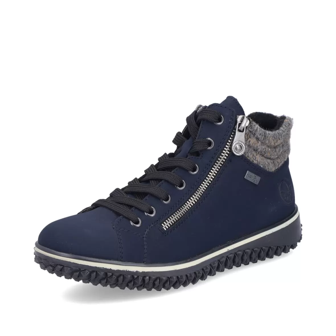 Art. No. Z4263-14Rieker Z4263-14 er smarte og moderne støvler til damer fra Rieker. Modellen er designet i en flot mørkeblå farve med snøre og praktisk lynlås i siden, der gør dem nemme at få af og på. Den bløde tekstilkant omkring anklen giver både varme og et casual look, mens den fleksible ydersål sikrer høj komfort i hverdagen. En stilfuld støvle, der kombinerer mode og funktion perfekt.