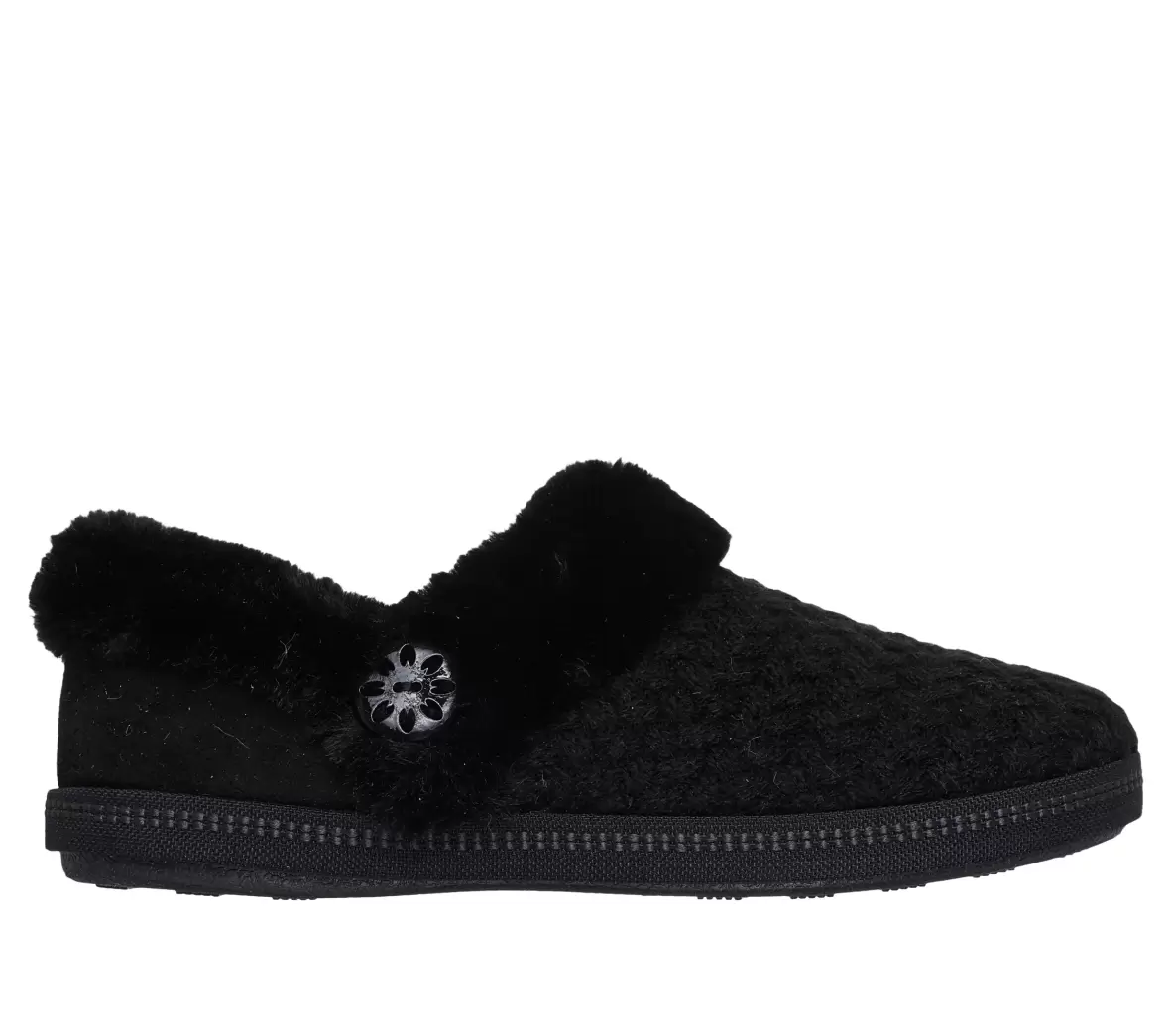 Art. No. 169041 BBKOplev ægte hjemmekomfort med Skechers COZY CAMPFIRE i klassisk sort – en luksuriøst blød hjemmesko, der er skabt til afslapning. Den strikkede teksturoverflade kombineres med en overdådig plysset krave og foret inderside, som holder dine fødder varme og behagelige, selv på de koldeste dage. En dekorativ knap i siden tilføjer et feminint touch, mens den fleksible og skridsikre ydersål gør det let at bevæge sig rundt i hjemmet med sikkerhed og stil. Den perfekte følgesvend til hyggestunder.