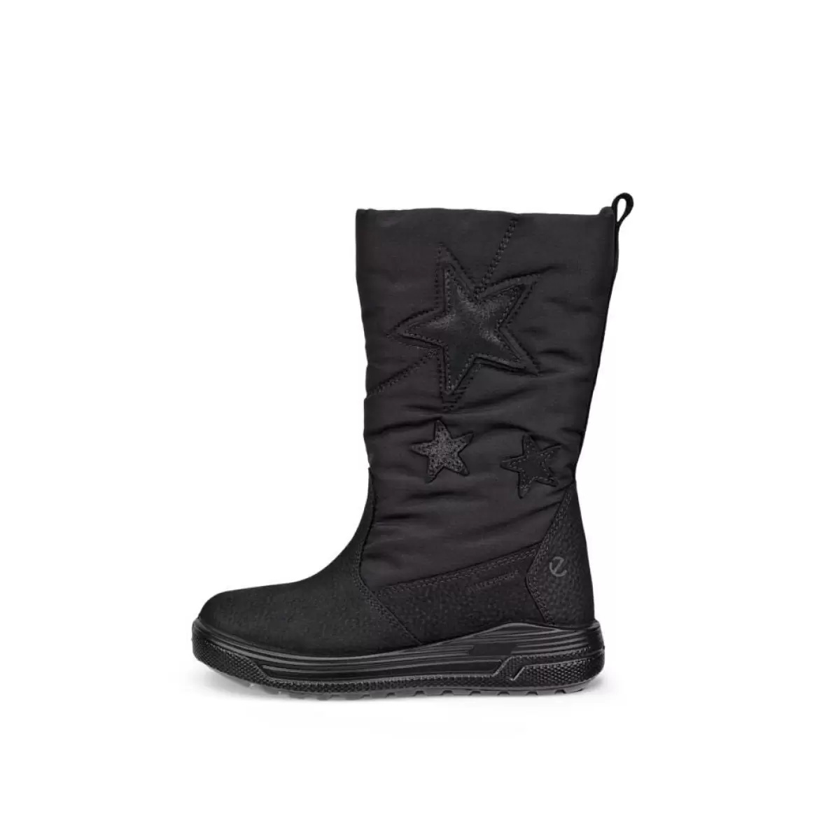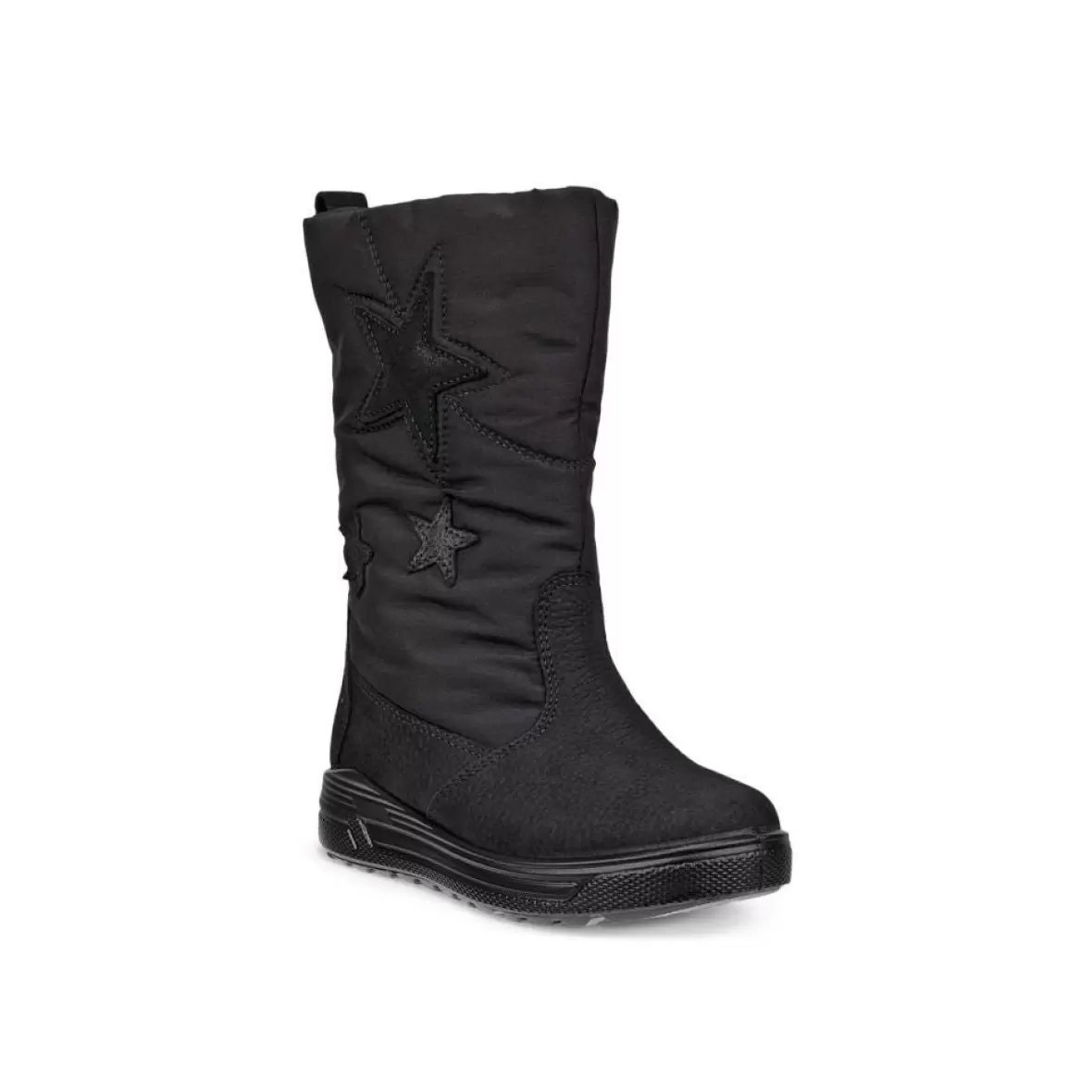 Art. No. 722392-51094ECCO URBAN SNOW K TALL er en høj, varm og stilfuld vinterstøvle til børn, der både beskytter og imponerer. Det sorte design med stjernedetaljer gør støvlen sjov og moderne, mens det høje skaft og den vandafvisende konstruktion sikrer, at fødderne forbliver tørre og varme i kolde og våde vintermåneder. En fleksibel og skridsikker ydersål giver godt fodfæste, så børnene trygt kan bevæge sig rundt – uanset vejret.