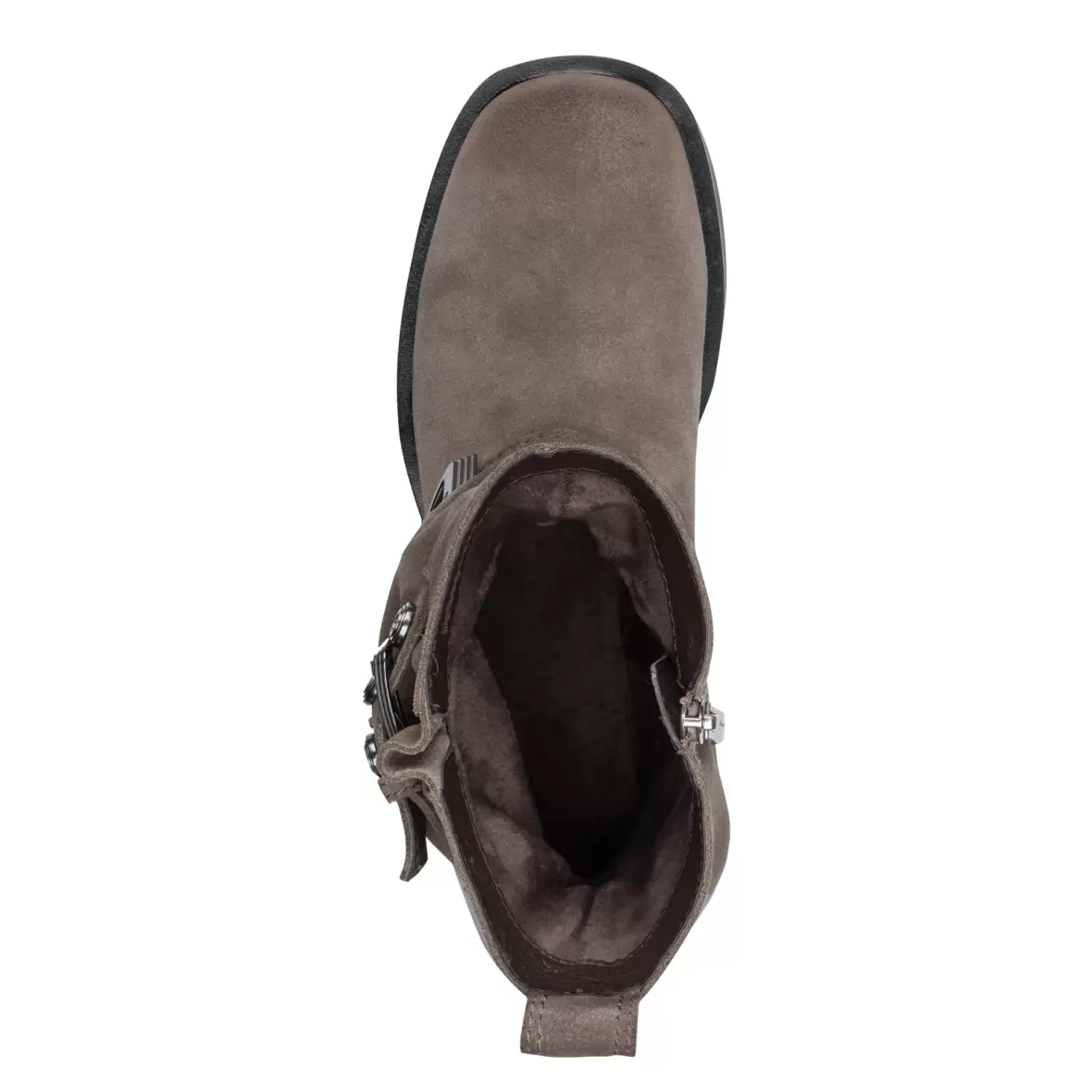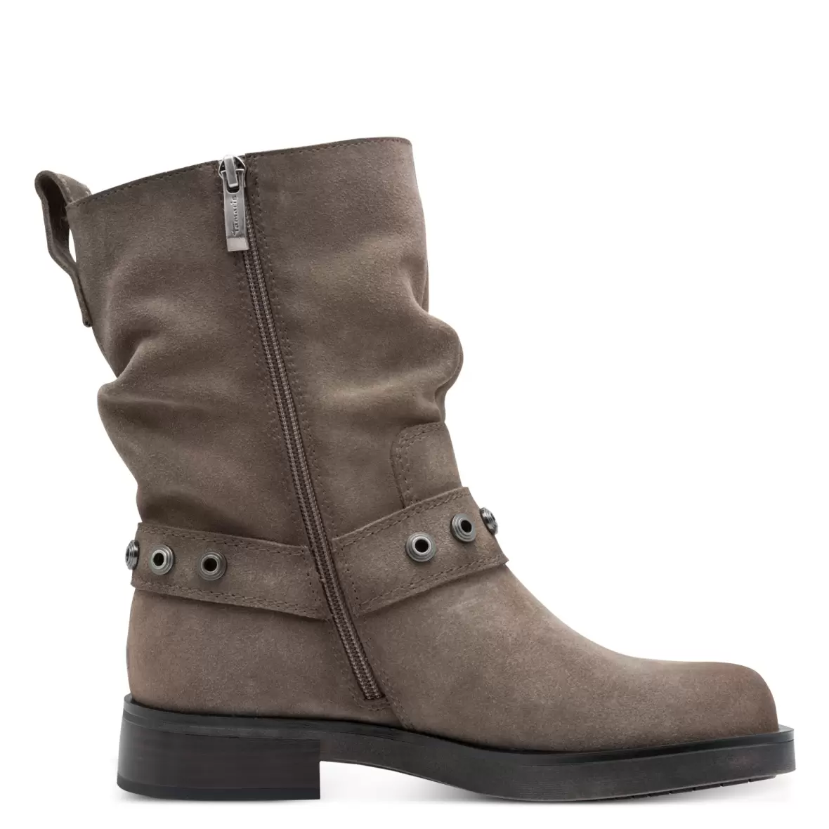 Art. No. 001-25472-45 341Disse stilfulde støvler fra Tamaris kombinerer et råt og feminint udtryk med høj komfort. Modellen er udført i blødt ruskind i en varm taupefarve, som giver et elegant, men afslappet look. De markante spænder og nitterdetaljer tilfører et trendy bikerinspireret twist, der gør støvlen nem at style både til jeans, kjoler og leggings.