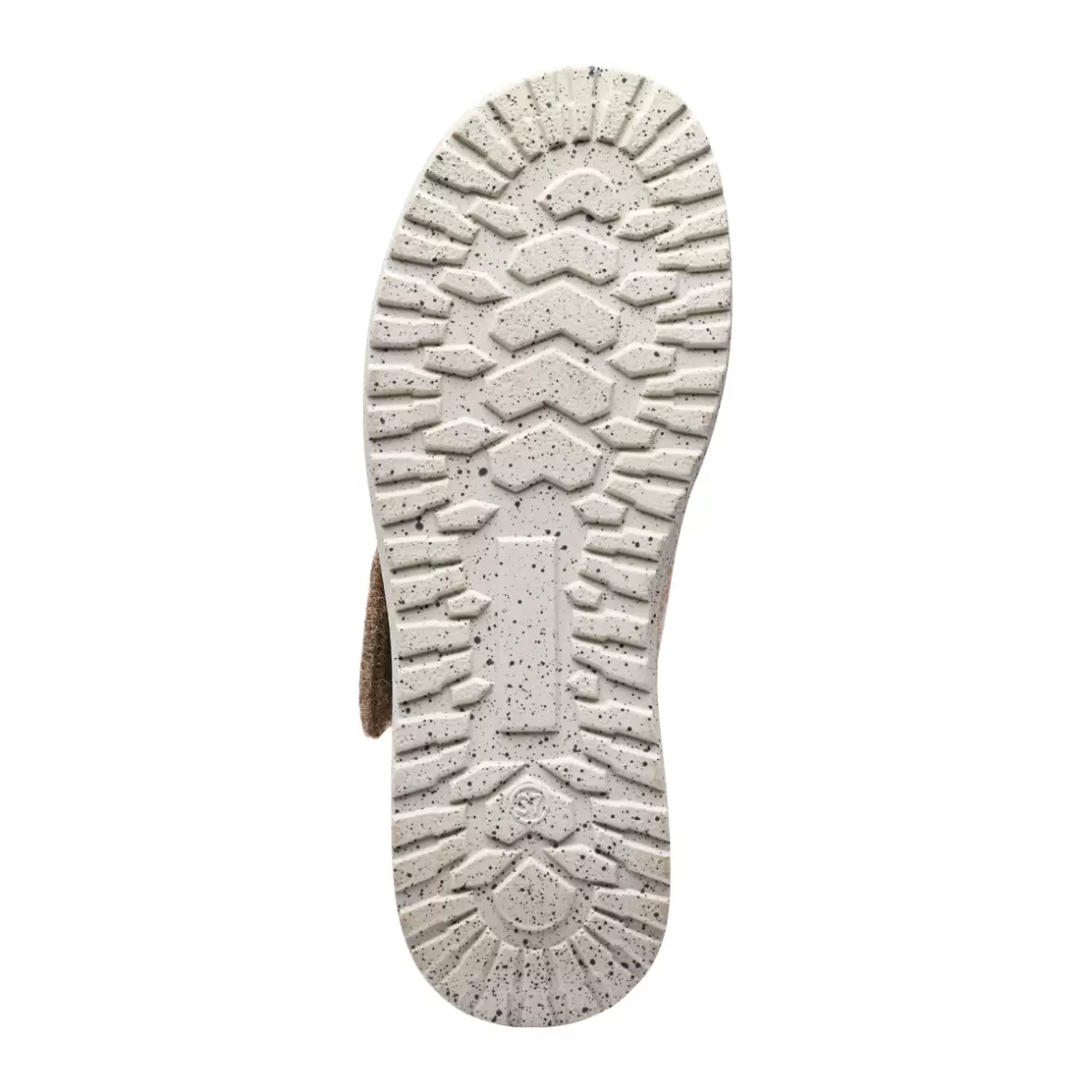 Overdelen er fremstillet i slidstærk filtet uld, der holder dine fødder lune og komfortable, samtidig med at materialet er både åndbart og naturligt temperaturregulerende.