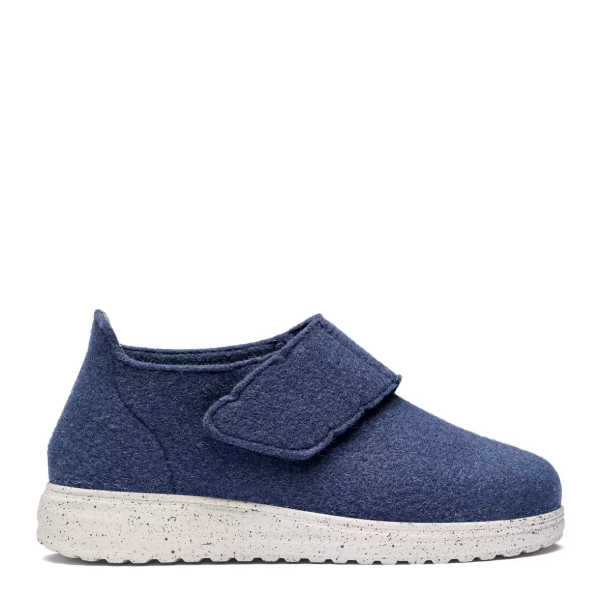 Art. No. 252-25-940,New Feet 252-25-940 er en praktisk og komfortabel damehjemmesko, der kombinerer varme, funktionalitet og høj kvalitet. Modellen har en lukket hælkappe og en bred velcrostrop, som gør det nemt at justere pasformen, så skoen sidder sikkert og behageligt på foden.