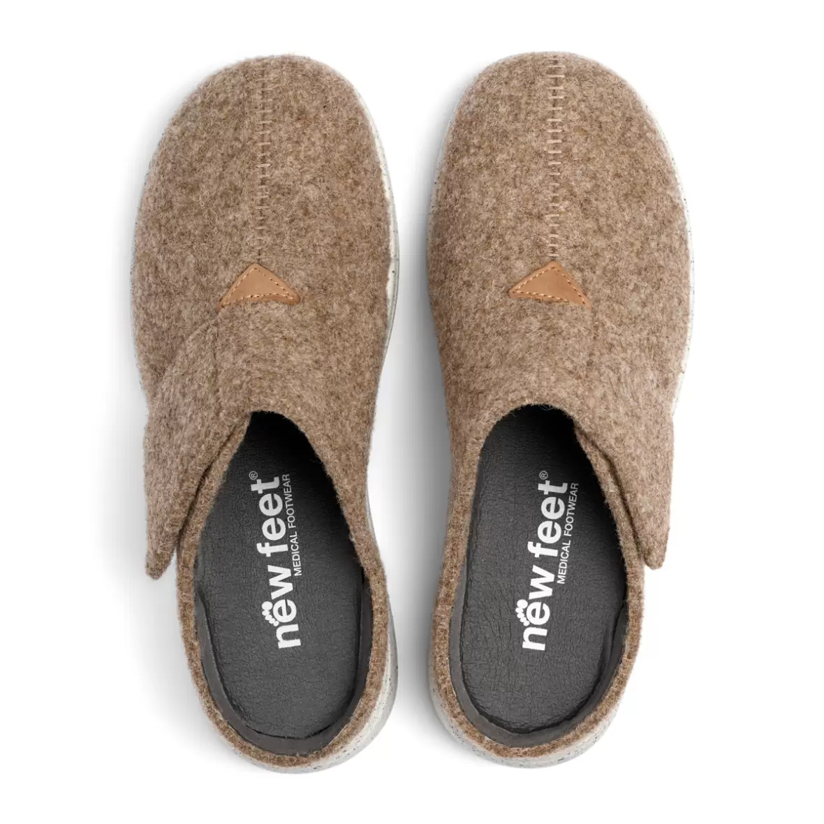 Art. No. 252-24-934Disse lyse hjemmesko fra New Feet kombinerer klassisk design med maksimal komfort. De er fremstillet i blød og slidstærk filtet uld, som holder fødderne varme og behagelige, samtidig med at materialet tillader dem at ånde.