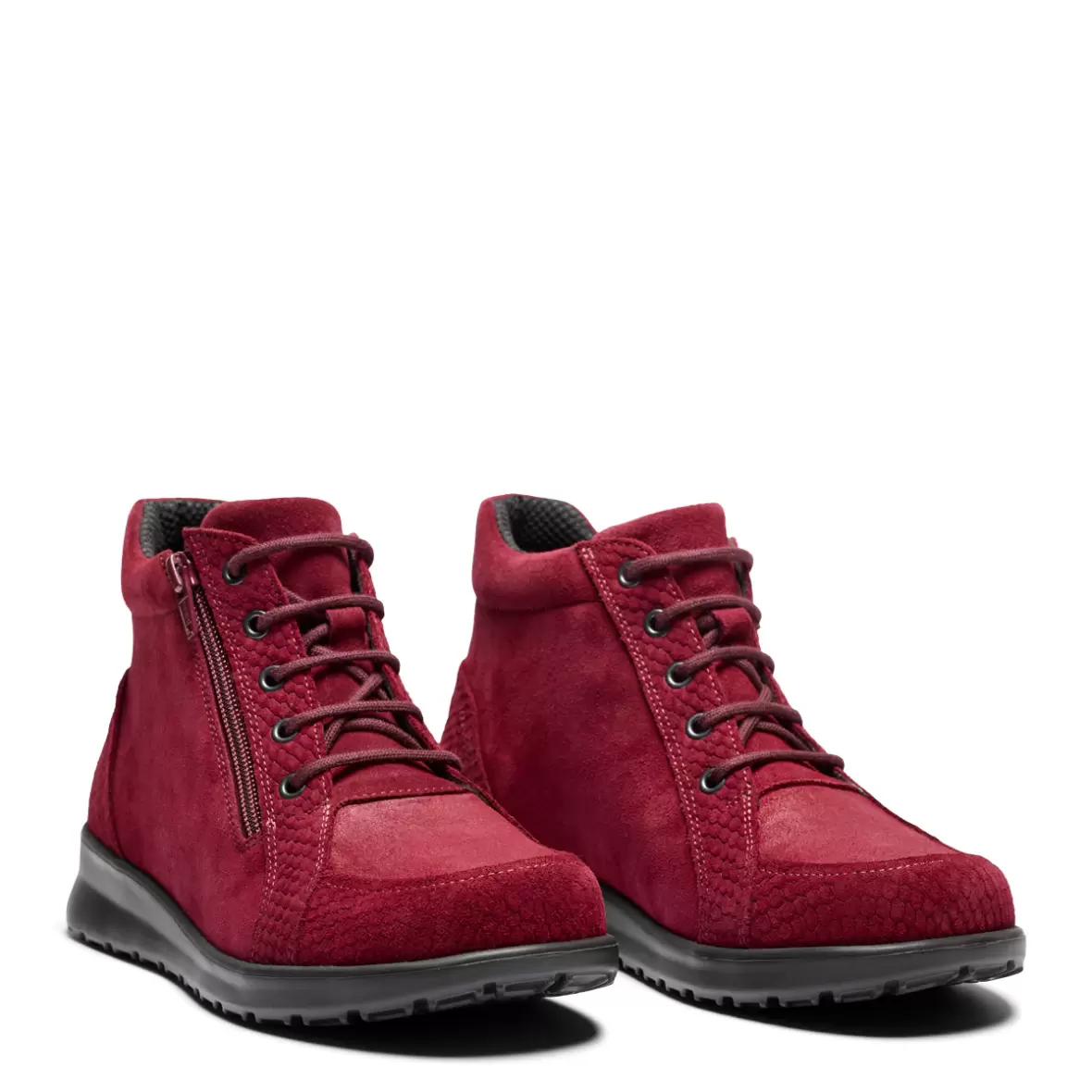 Art. No. 202-21-1823Disse smarte røde støvler fra New Feet kombinerer komfort, funktionalitet og et moderne look. Modellen er udstyret med både snøre og lynlås, så du får fleksibiliteten fra snørebåndet og den nemme betjening med lynlåsen.