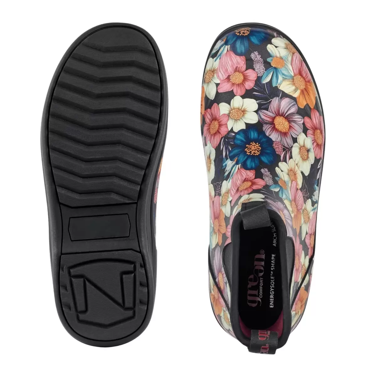 Art. No. 741001Q63-132Green Comfort Rain Rubberboot Plain 741001Q63-132 er smarte og feminine gummistøvler til damer. De er designet med et farverigt blomstermotiv, der giver et friskt og moderne look selv på regnvejrsdage. Støvlerne er praktiske, komfortable og perfekte til både by og natur.