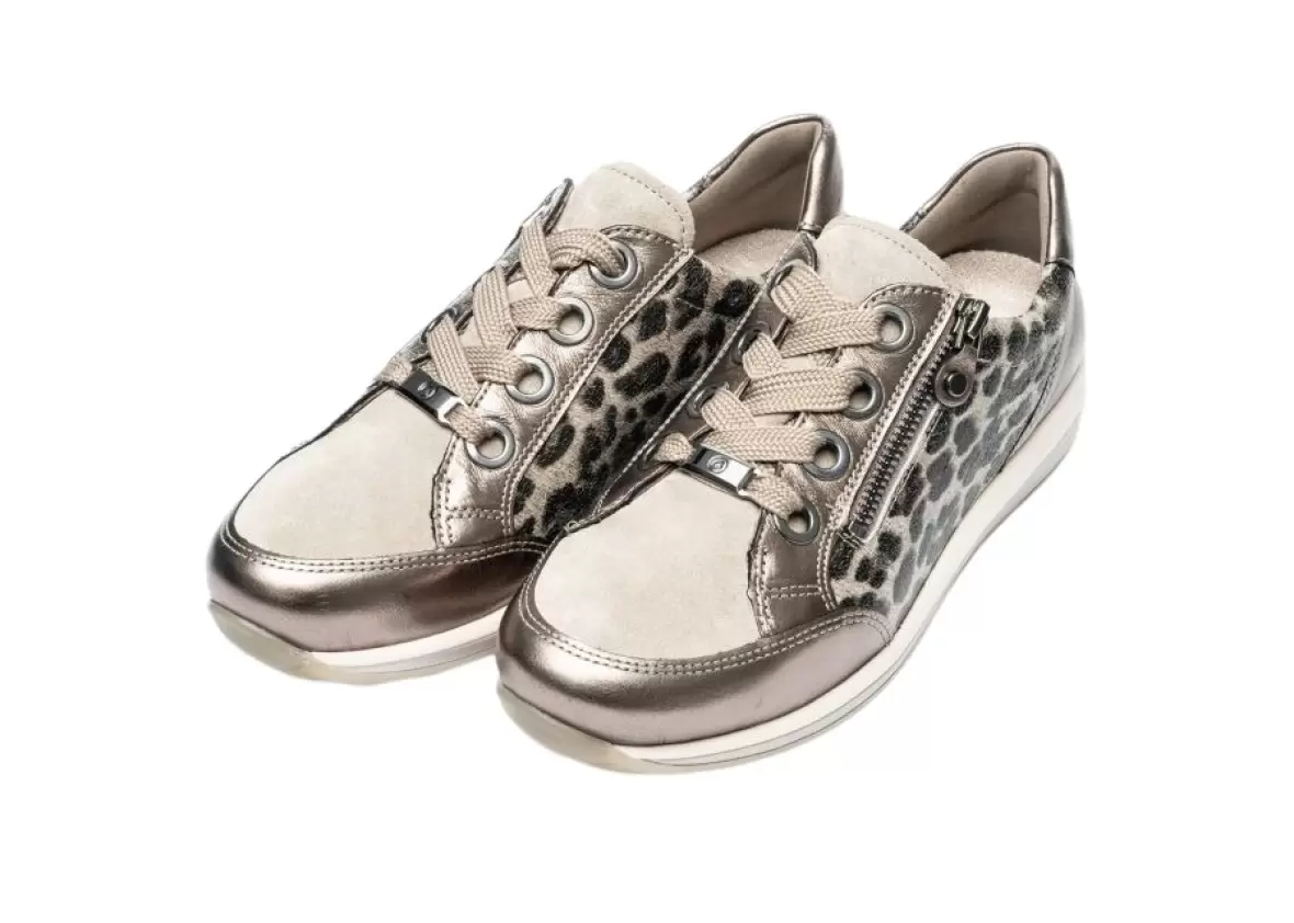 Art. No. 1264587-05Disse Ara Osaka-Highsoft sneakers kombinerer stil, komfort og kvalitet i én moderne sko. Med deres flotte leoparddetaljer og metallic finish skiller de sig ud og giver ethvert outfit et elegant, sporty twist.