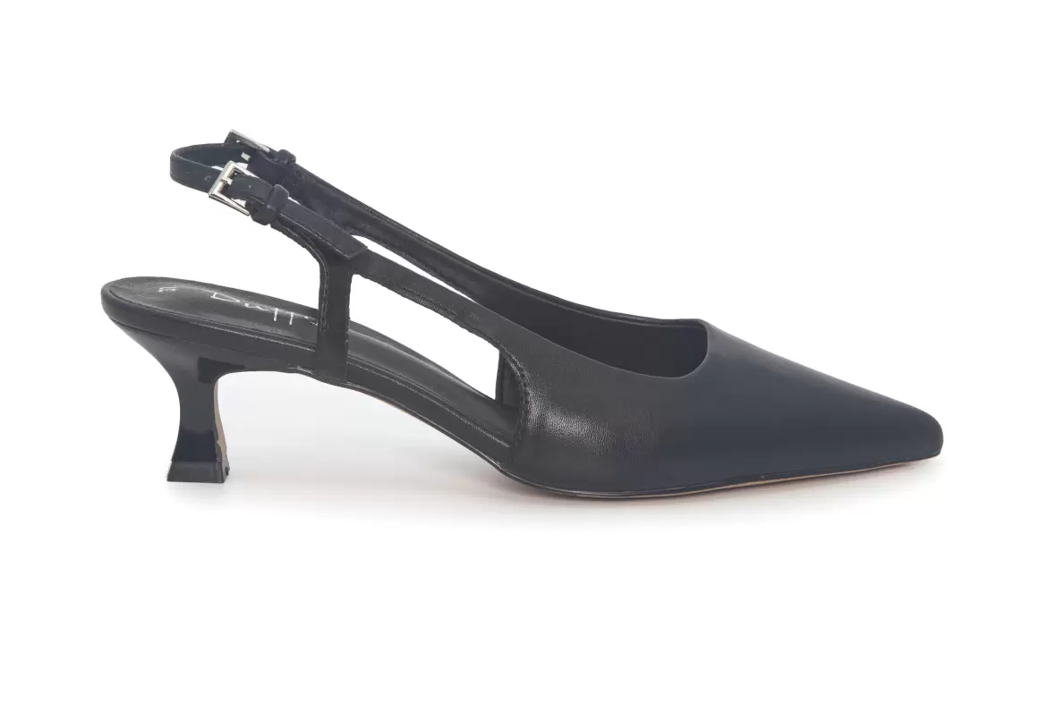 Art. No. 97-21016-01Duffy LAVELLO UNO 97-21016-01 er et elegant valg til damer, der ønsker stilrent og feminint fodtøj til både hverdag og festlige lejligheder. Skoen er designet med en spids snude og en lav, slank hæl, som giver et sofistikeret look uden at gå på kompromis med komforten. Den åbne slingback-model med justerbar rem omkring anklen sikrer en god pasform, mens det enkle sorte design gør den let at kombinere med både kjoler, bukser og nederdele. Et alsidigt og tidløst valg fra Duffy, der kan løfte ethvert outfit.