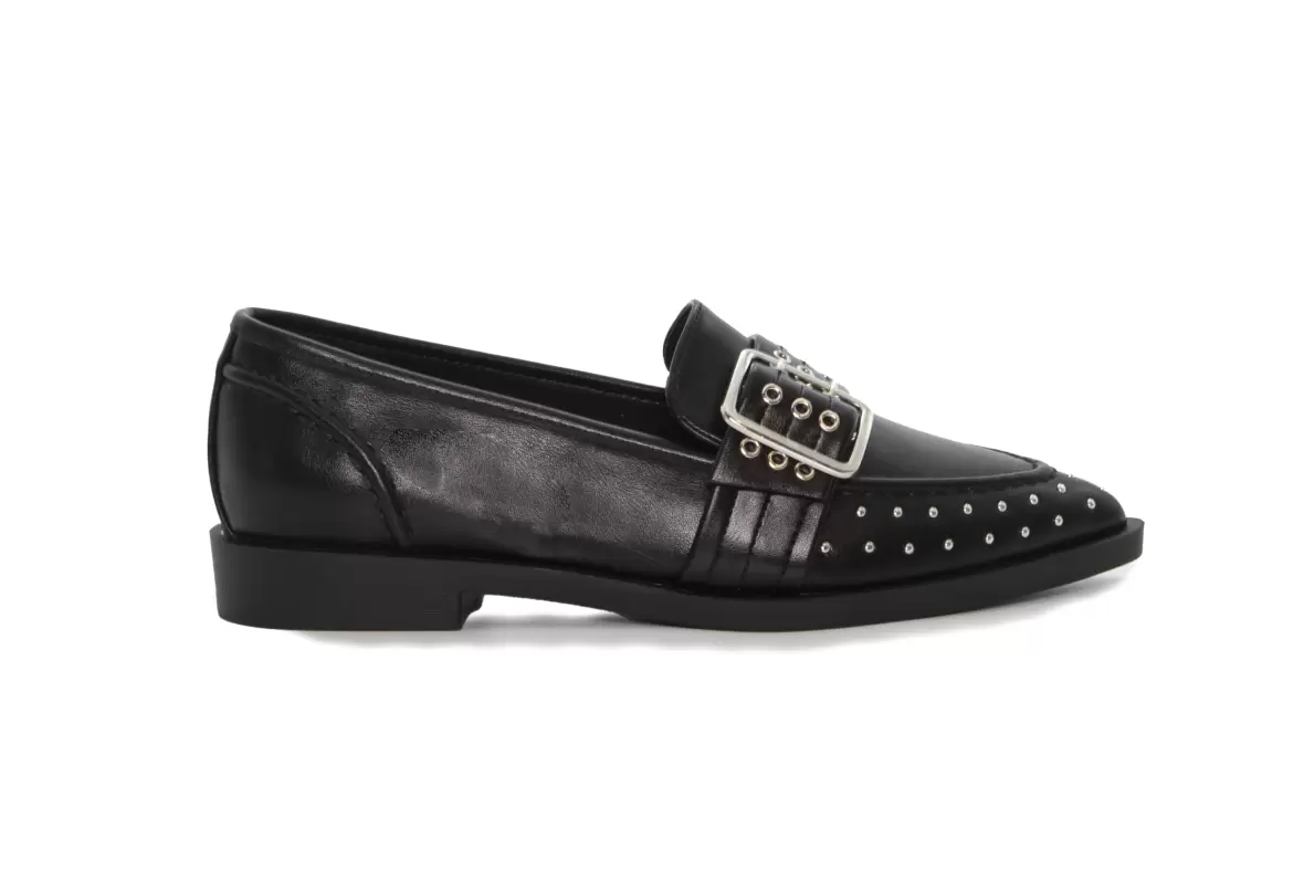 Art. No. 97-21282-01Duffy FULGATORE OTTO 97-21282-01 er et par elegante loafers med et moderne twist. Den sorte sko er pyntet med små sølvnitter, som giver et sofistikeret men kantet udtryk, og den markante spænde foran tilfører ekstra stil og karakter. Med den spidse snude og klassiske pasform er skoen både komfortabel og fashionabel – perfekt til at pifte hverdagsoutfittet op eller som et chic alternativ til festsko. Et smart valg til den modebevidste kvinde, der ønsker sko med både klasse og attitude.