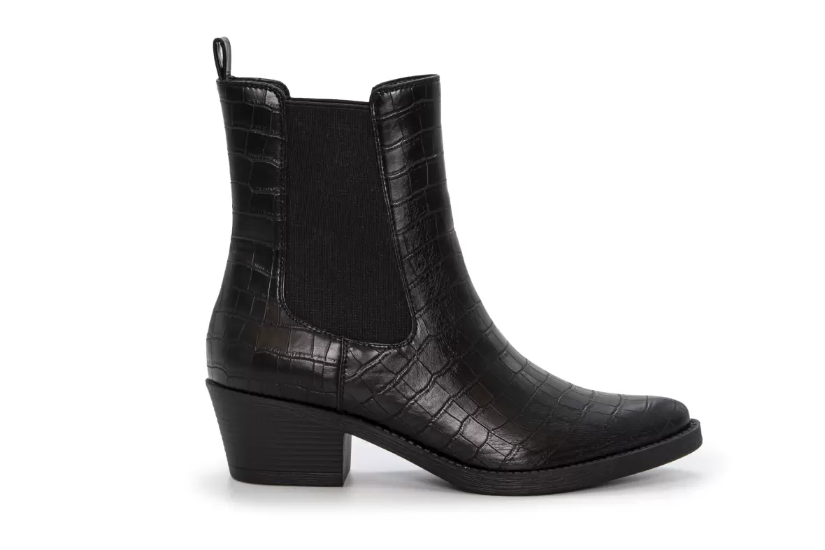 Art. No. 97-31103-01Duffy MESSINA LOVE 97-31103-01 er et par elegante ankelstøvler med et moderne krokopræget design, der giver et sofistikeret og stilfuldt udtryk. Støvlen har den klassiske Chelsea-stil med elastiske sider, som gør den nem at tage af og på, samtidig med at den sikrer en behagelig pasform. Den stabile blokhæl giver ekstra komfort og et feminint løft, hvilket gør støvlerne perfekte både til hverdagsbrug og mere festlige anledninger. Et smart valg til kvinder, der ønsker en alsidig støvle med et trendy twist.