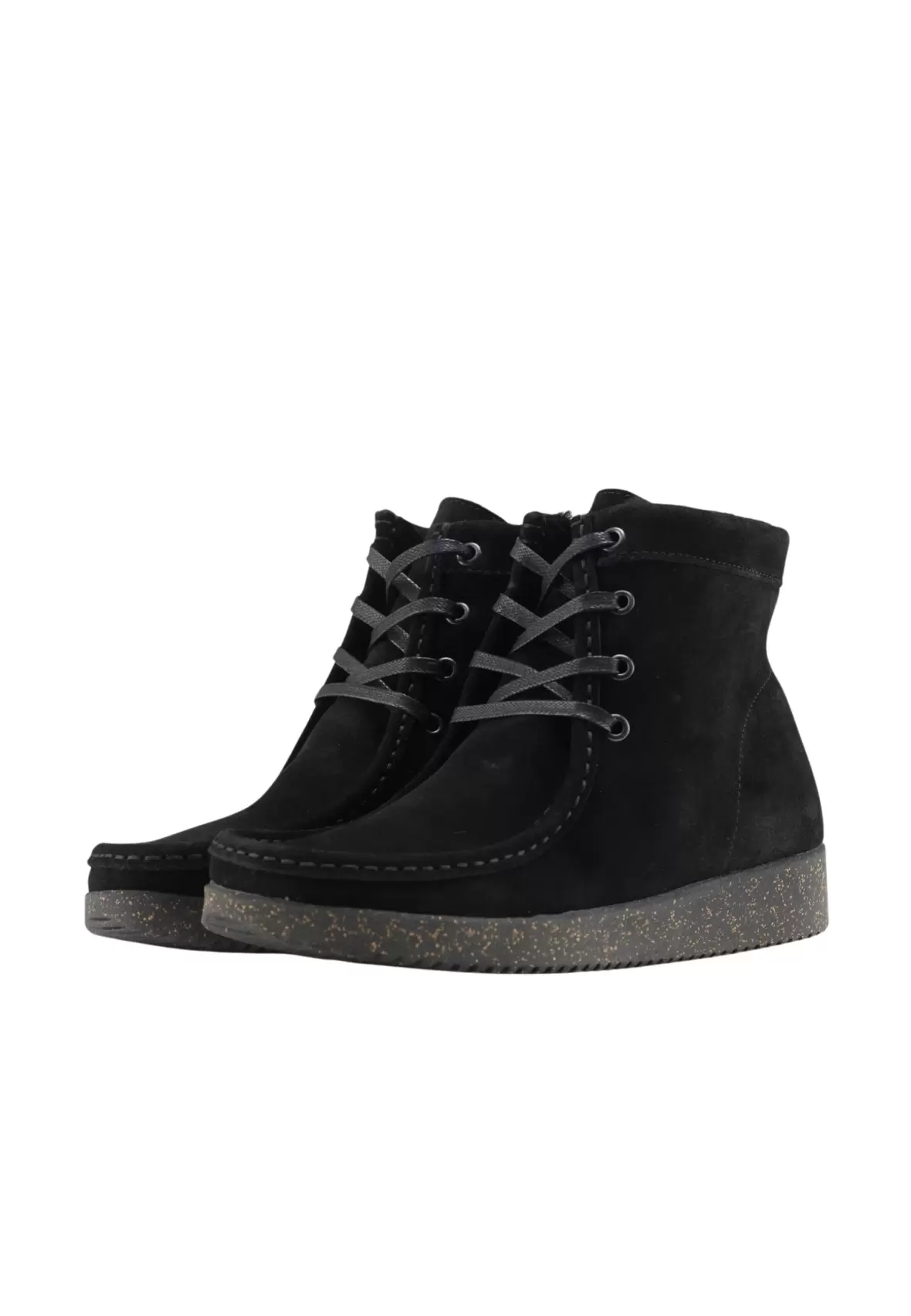 Art. No. 1005-158-002Nature Asta 1005-158-002 er et par smarte og moderne sorte støvler til damer fra Nature. De er fremstillet i blødt ruskind, som giver et elegant og naturligt look. Støvlerne har den karakteristiske Nature-sål med korkdetaljer, der sikrer høj komfort, stødabsorbering og et godt fodfæste. Den klassiske snørelukning giver en justerbar pasform, mens det tidløse design gør dem perfekte til både hverdagsbrug og mere stilfulde anledninger. Et bæredygtigt valg, hvor komfort, kvalitet og enkelt skandinavisk design går hånd i hånd.