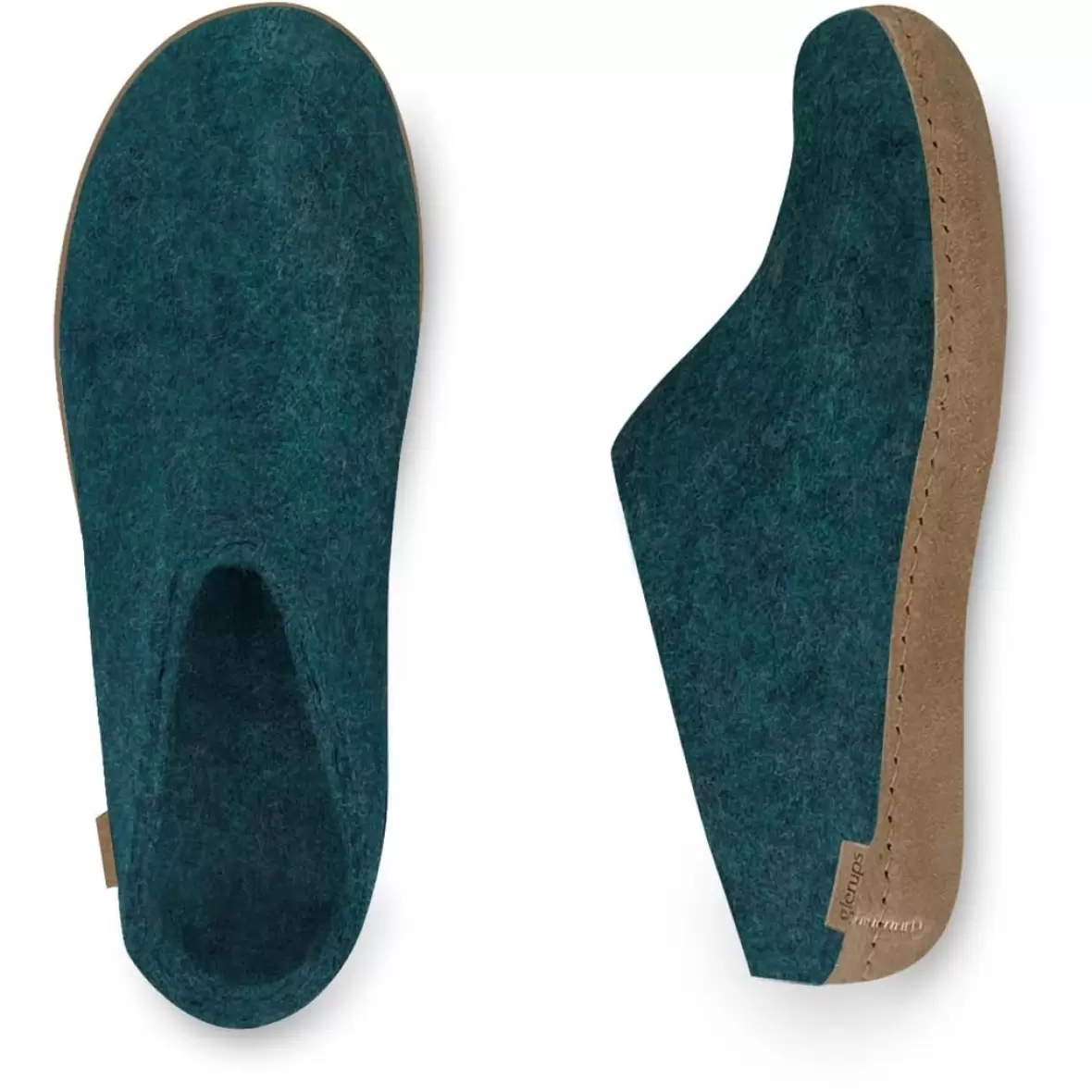 Art. No. B-06Glerups B-06 Slip-on with leather sole er pæne og behagelige hjemmesko til voksne fra mærket Glerups. De er fremstillet af 100 % naturlig, filtet uld, som former sig efter foden og giver en lun og åndbar komfort hele dagen. Den fleksible lædersål gør dem skridsikre og ideelle til indendørs brug, mens slip-on designet gør dem nemme at tage af og på. Den smukke blågrønne farve giver et stilrent og roligt udtryk – perfekt til hyggelige stunder derhjemme.