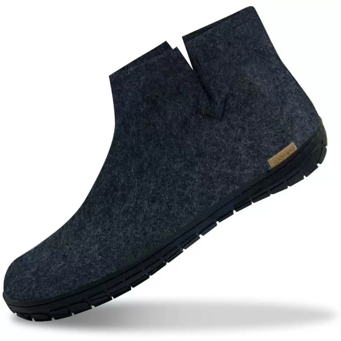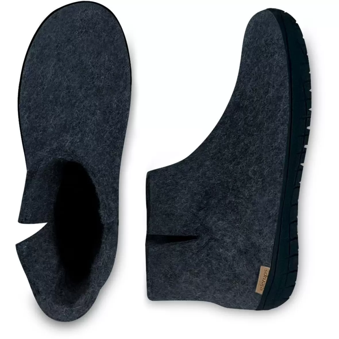 Art. No. GR02-10Glerups GR02-10 Boot with natural rubber er gode og behagelige hjemmesko til voksne fra mærket Glerups. De er fremstillet i 100 % naturlig, filtet uld, som giver varme og åndbarhed, så fødderne holdes tørre og komfortable hele dagen. Den fleksible ydersål i naturgummi giver et solidt greb, hvilket gør dem velegnede til både indendørs og udendørs brug. Med deres høje skaft og mørkegrå farve kombinerer de funktionalitet, varme og stil i et tidløst design, perfekt til kolde dage.