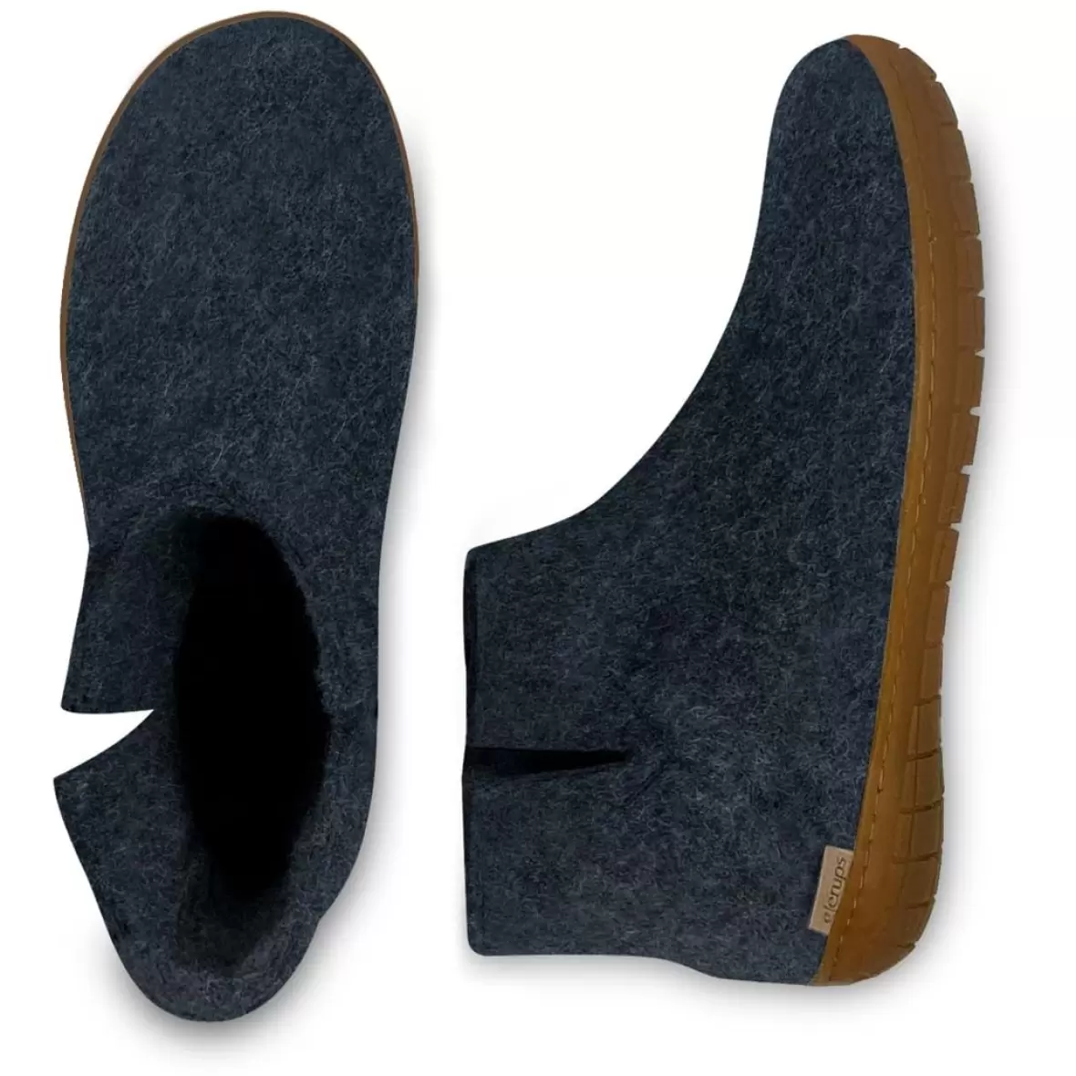 Art. No. GR-10Glerups GR-10 Boot with natural rubber er smarte og behagelige hjemmesko fra mærket Glerups. De er fremstillet i 100 % naturlig, filtet uld, som sikrer en blød, varm og åndbar komfort hele dagen. Den fleksible sål i naturgummi giver et sikkert greb og gør dem velegnede til både indendørs og udendørs brug. Det høje skaft giver ekstra varme omkring anklen, mens den mørkegrå farve giver et stilrent og tidløst udtryk. Et perfekt valg til dig, der ønsker kvalitet, varme og enkel elegance i hverdagen.