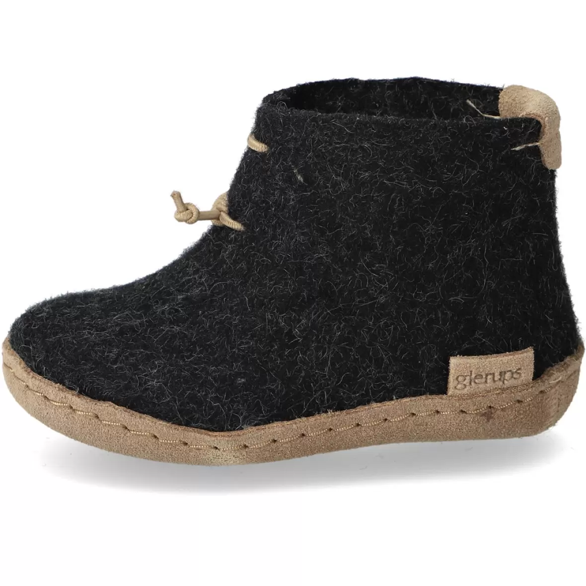 Art. No. GK-02Glerups GK-02 Boot kids er gode hjemmesko til børn fra mærket Glerups. De er lavet af 100 % naturlig, filtet uld, som holder små fødder varme og komfortable, samtidig med at materialet er åndbart og fleksibelt. Den bløde lædersål giver et godt greb på glatte gulve og gør skoene ideelle til leg og bevægelse indendørs. Den sorte farve giver et tidløst og alsidigt look, mens den enkle snørelukning gør skoene nemme at tage af og på. Et perfekt valg til børn, der fortjener naturlig komfort og kvalitet i hverdagen.
