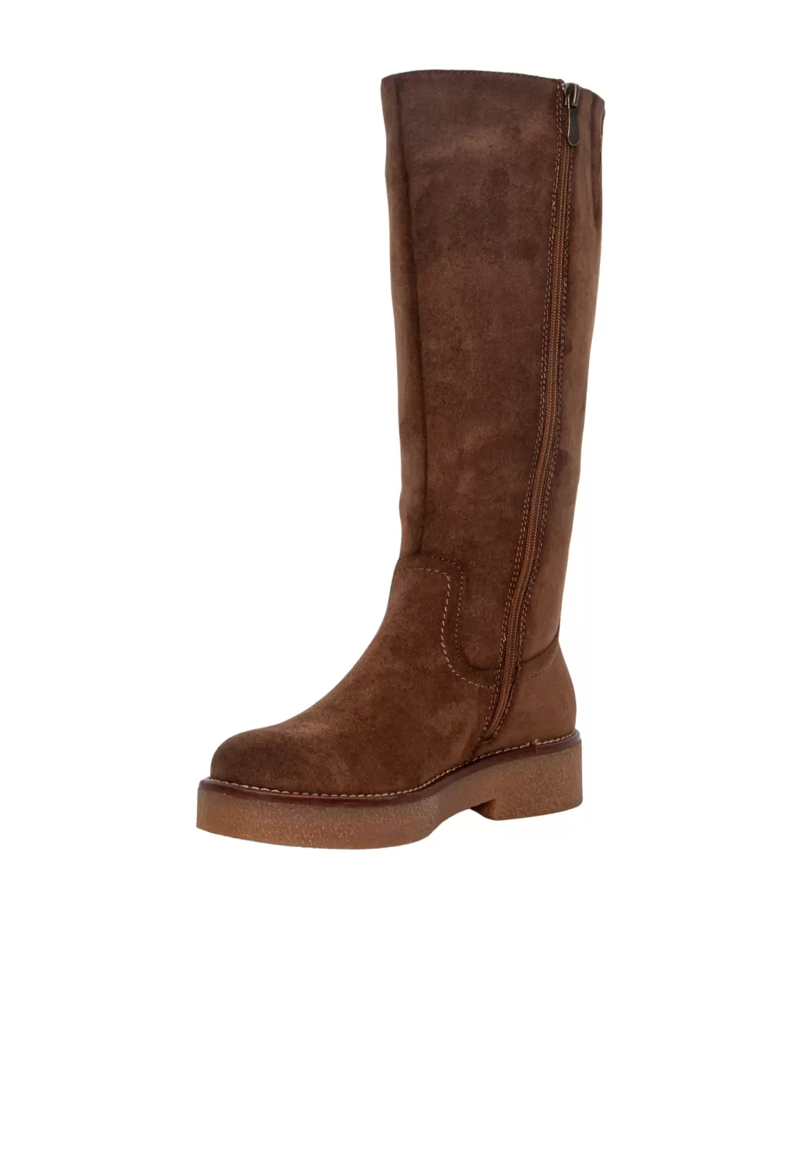 Art. No. 9400192-22Duffy CESENA UNO 9400192-22 er et par pæne og behagelige støvler til damer fra Duffy. Støvlerne er lavet i blødt brunt ruskind med synlige stikninger, der giver et stilrent og moderne udtryk. Den chunky, men lette sål giver god komfort og støtte, så de kan bæres hele dagen uden besvær. Det høje skaft giver et elegant look, der passer perfekt til både kjoler, nederdele og jeans. Et par alsidige støvler, der kombinerer feminin stil med praktisk komfort – ideelle til både hverdagsbrug og pænere anledninger.