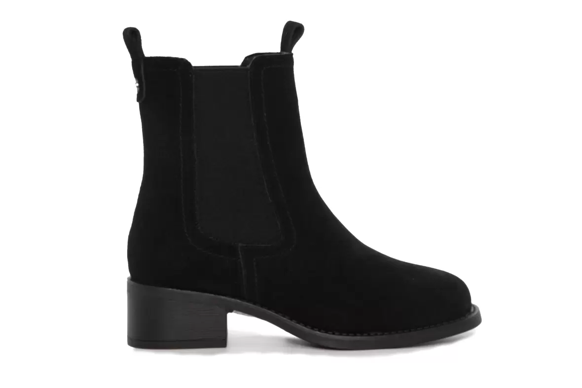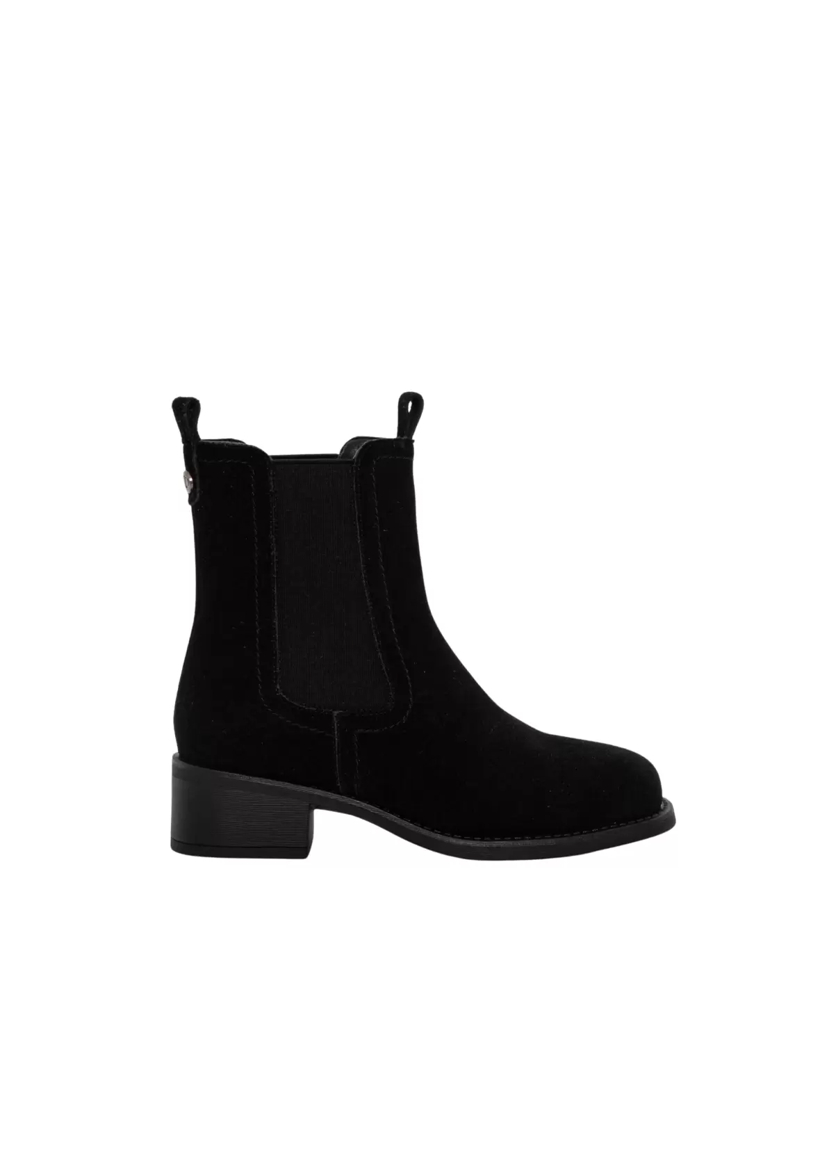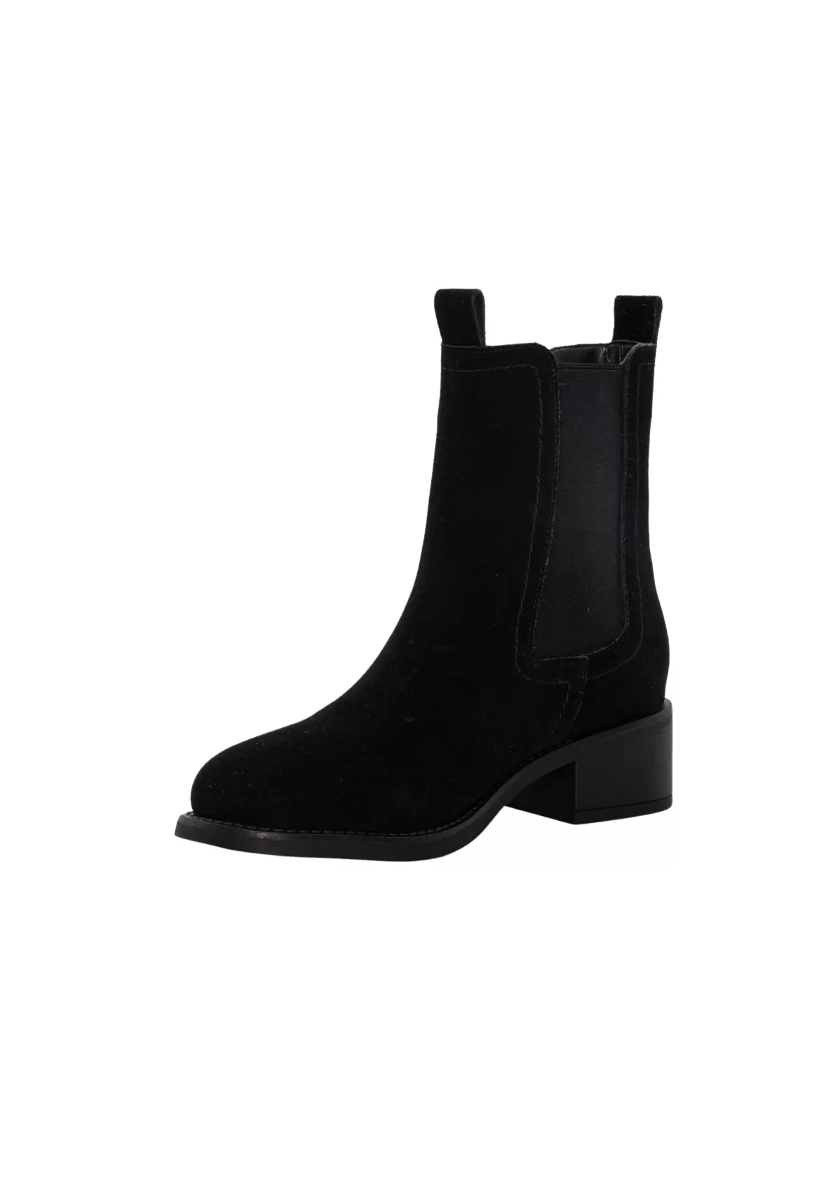 Art. No. 7580743-01Duffy MARENVE CINQUE 7580743-01 er et par smarte og stilrene støvler til damer fra Duffy. De er udført i sort ruskind med klassisk chelsea-design, der gør dem lette at tage af og på takket være de elastiske sider. Den lave blokhæl giver et feminint løft, samtidig med at støvlen bevarer en behagelig pasform til hverdagsbrug. Med deres tidløse look kan de styles til både bukser, kjoler og nederdele – perfekte til efterår og vinter, hvor både komfort og elegance er i fokus.