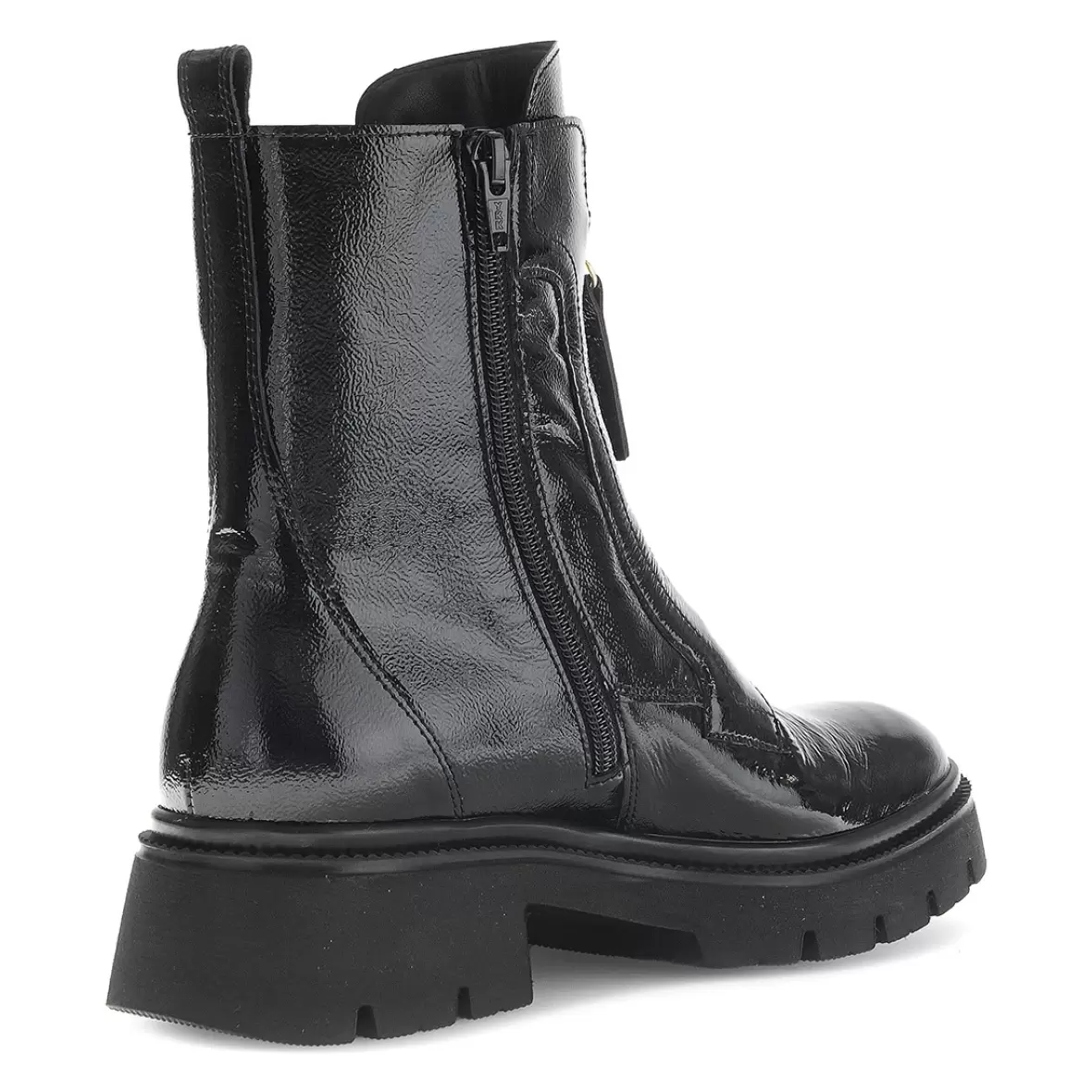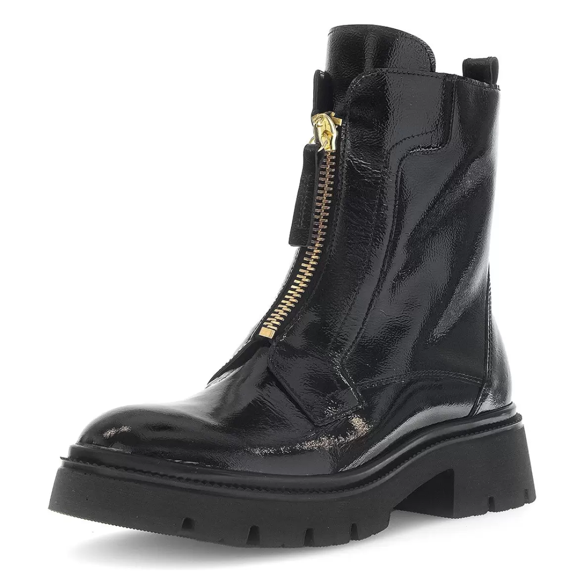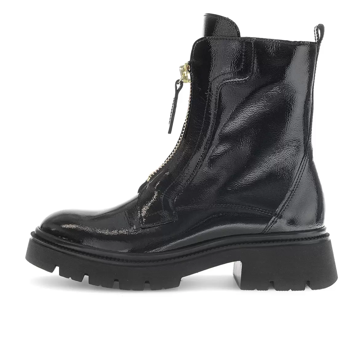 Art. No. 71.854.20Gabor Foulard/Danka 71.854.20 er et par smarte og moderne sorte støvler til damer, der kombinerer rå kant med elegant stil. Støvlen er lavet i blankt sort skind med en flot lakfinish, som giver et eksklusivt og iøjnefaldende udtryk. Den gyldne lynlås foran fungerer både som praktisk lukning og som et stilfuldt designelement, der tilfører et luksuriøst touch. Den kraftige sål med let hæl giver et trendy look og sikrer samtidig god komfort og stabilitet. Perfekte til både jeans, leggings og kjoler – Gabor 71.854.20 er støvlen til dig, der vil have mode, kvalitet og komfort i ét.