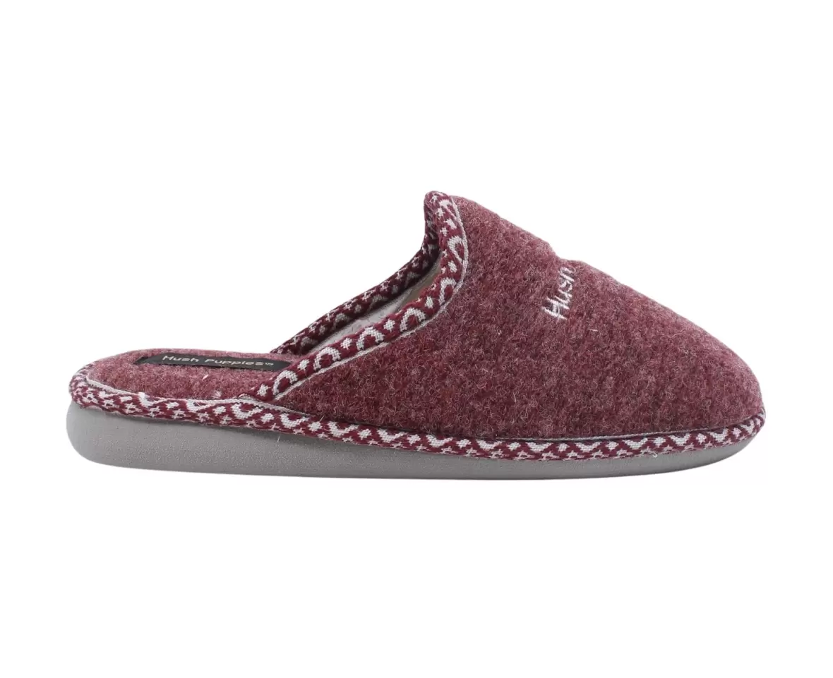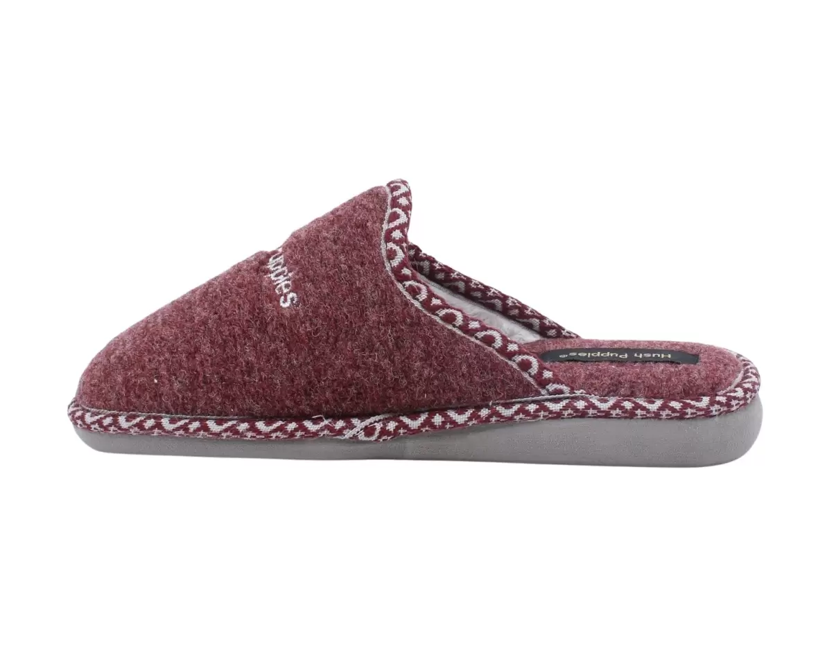 Art. No. HPB60164Hush Puppies Women’s Lola – Burgundy HPB60164 er lette og komfortable hjemmesko til damer, perfekte til afslapning derhjemme. De er fremstillet i et blødt og lunt materiale, der holder fødderne varme, og har en praktisk slip-on pasform, som gør dem nemme at tage på. Den fleksible sål sikrer behagelig støtte, mens den flotte bordeauxfarve og de fine kantdetaljer giver et stilrent og hyggeligt udtryk.