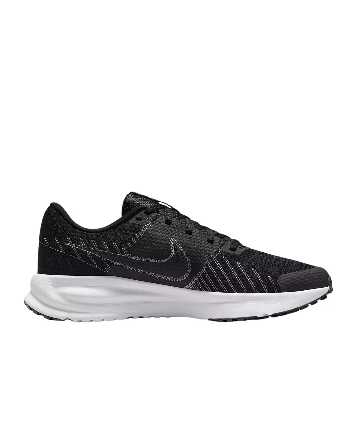 Den bløde mellemsål giver fremragende stødabsorbering, mens den robuste ydersål sørger for et godt greb på forskellige underlag. Skoens elegante sorte farve med hvide detaljer og det ikoniske Nike Swoosh-logo giver et klassisk og moderne look.