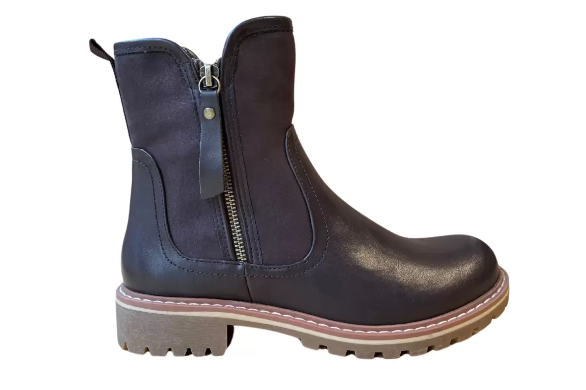 Art. No. 2303-22 DARK BROWNMorsø 5th Avenue 2303-22 i farven Dark Brown er en elegant og alsidig støvle til damer, der kombinerer klassisk design med praktisk komfort. Støvlen er fremstillet i en mørkebrun tone med en let skinnende finish, som giver et stilrent og tidløst udtryk. Den robuste sål med groft mønster sikrer godt greb og stabilitet, mens den dekorative lynlås i siden gør det nemt at tage støvlen af og på. Indvendigt byder støvlen på en blød og behagelig foring, som giver varme og komfort i hverdagen. Perfekt til både byliv og afslappede efterårsdage.