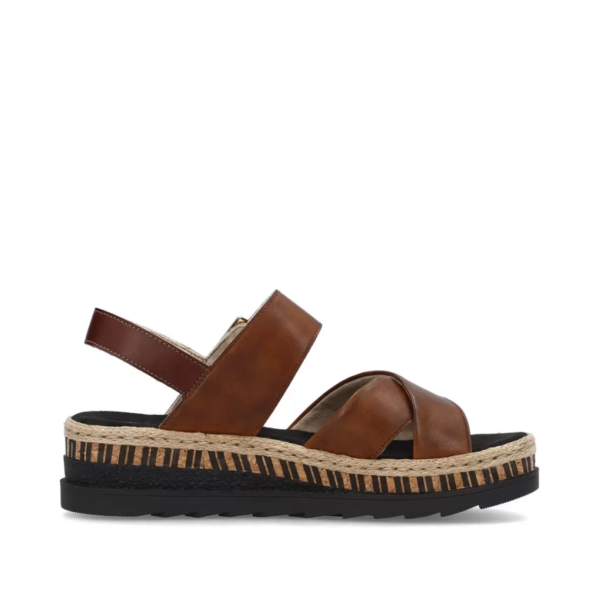 Art. No. V7951-24Rieker V7951-24 er stilfulde og komfortable damesandaler, der kombinerer et klassisk design med høj komfort. De brede remme i blødt læder giver en behagelig pasform, mens den justerbare rem med spænde sikrer god støtte omkring foden. Den lette og fleksible sål med flettet kant giver ekstra komfort hele dagen og gør sandalen ideel til både hverdag og sommerens mange anledninger.