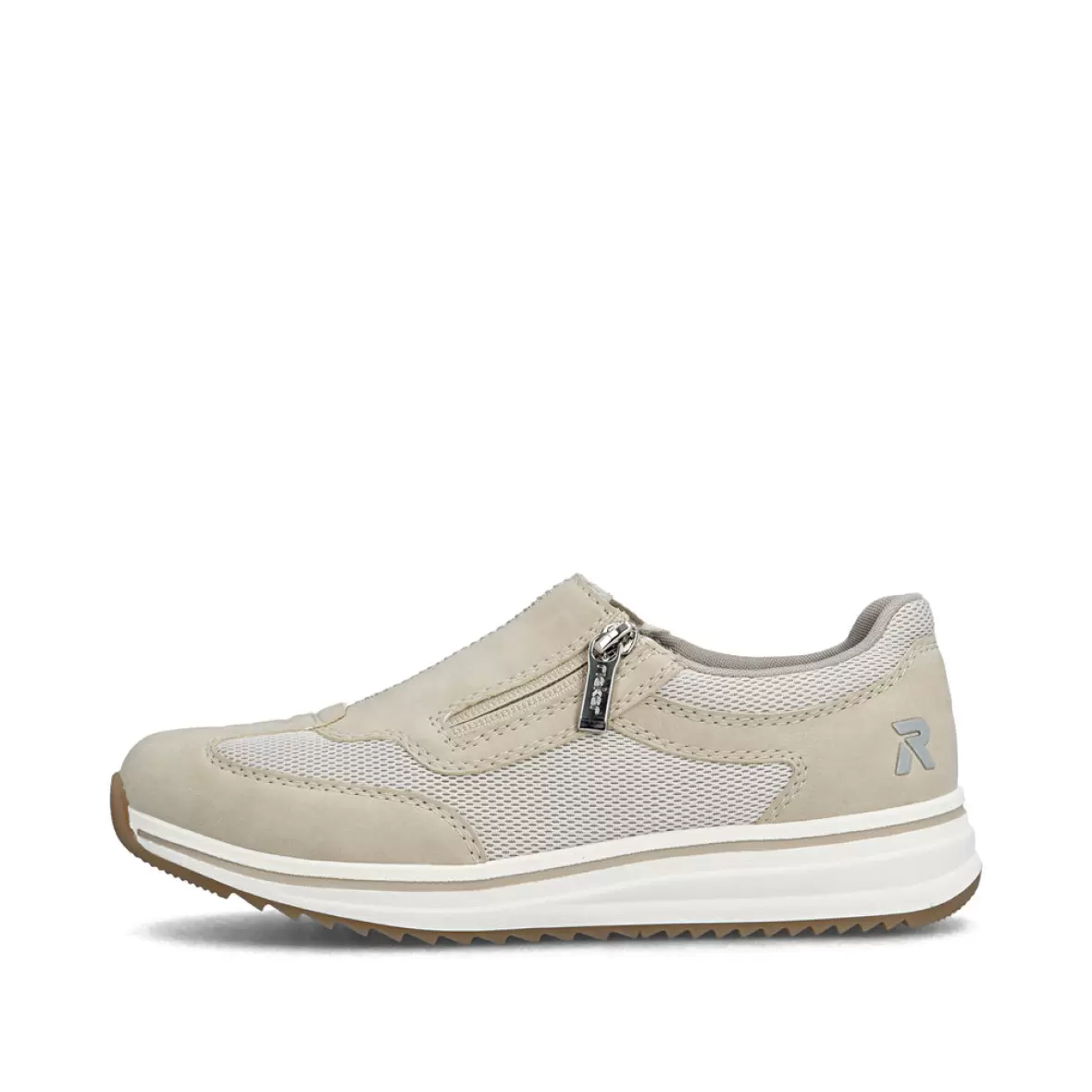 Art. no. L5854-62Disse sneakers fra Rieker er designet uden snørebånd og er nemme at tage af og på. Overdelen kombinerer glatte og åndbare materialer, som giver foden god komfort hele dagen. Den lette, fleksible sål sørger for behagelig stødabsorbering, mens den diskrete lynlås i siden både er praktisk og giver et moderne udtryk. En alsidig og komfortabel sneaker, der passer perfekt til hverdagsbrug.