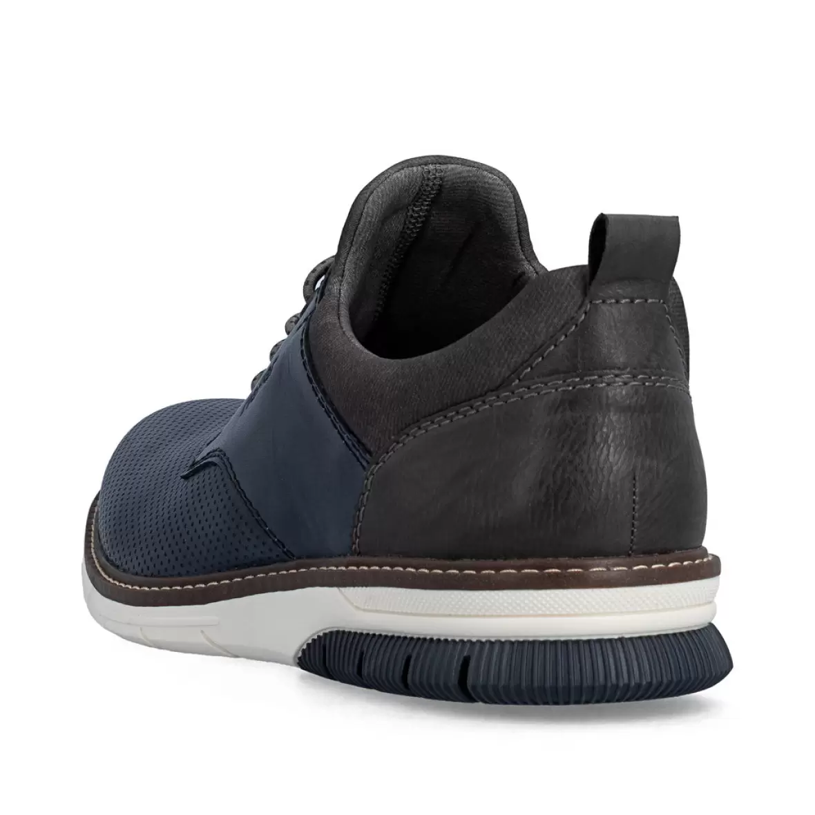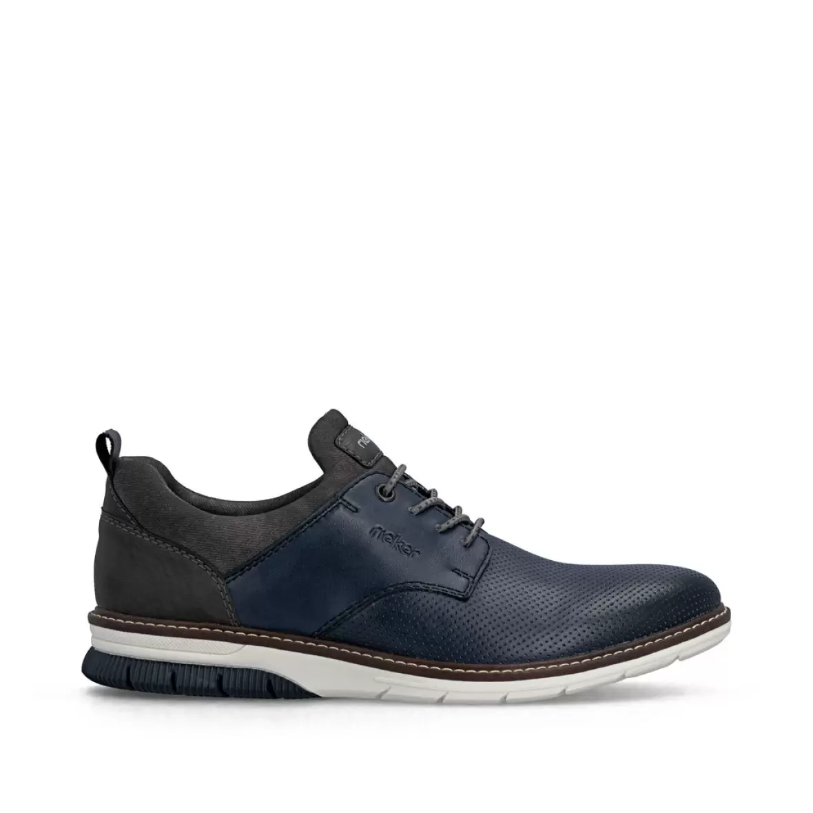 Art. No. 14450-16Her får du en pæn og komfortabel herresko fra Rieker, der kombinerer et klassisk udtryk med moderne komfort. Skoen er udført i mørkeblåt, perforeret skind, som giver et elegant look og samtidig sikrer god åndbarhed – perfekt til både arbejde og fritid. Den bløde indersål og Riekers velkendte lette opbygning giver en behagelig pasform hele dagen, mens den fleksible og stødabsorberende ydersål aflaster fødderne, når du går. Snørelukningen sikrer, at skoen sidder godt på foden, og det diskrete farvespil i sål og hælkappe giver et stilfuldt, men afslappet udtryk. En ideel sko til dig, der ønsker pænt fodtøj uden at gå på kompromis med komforten
