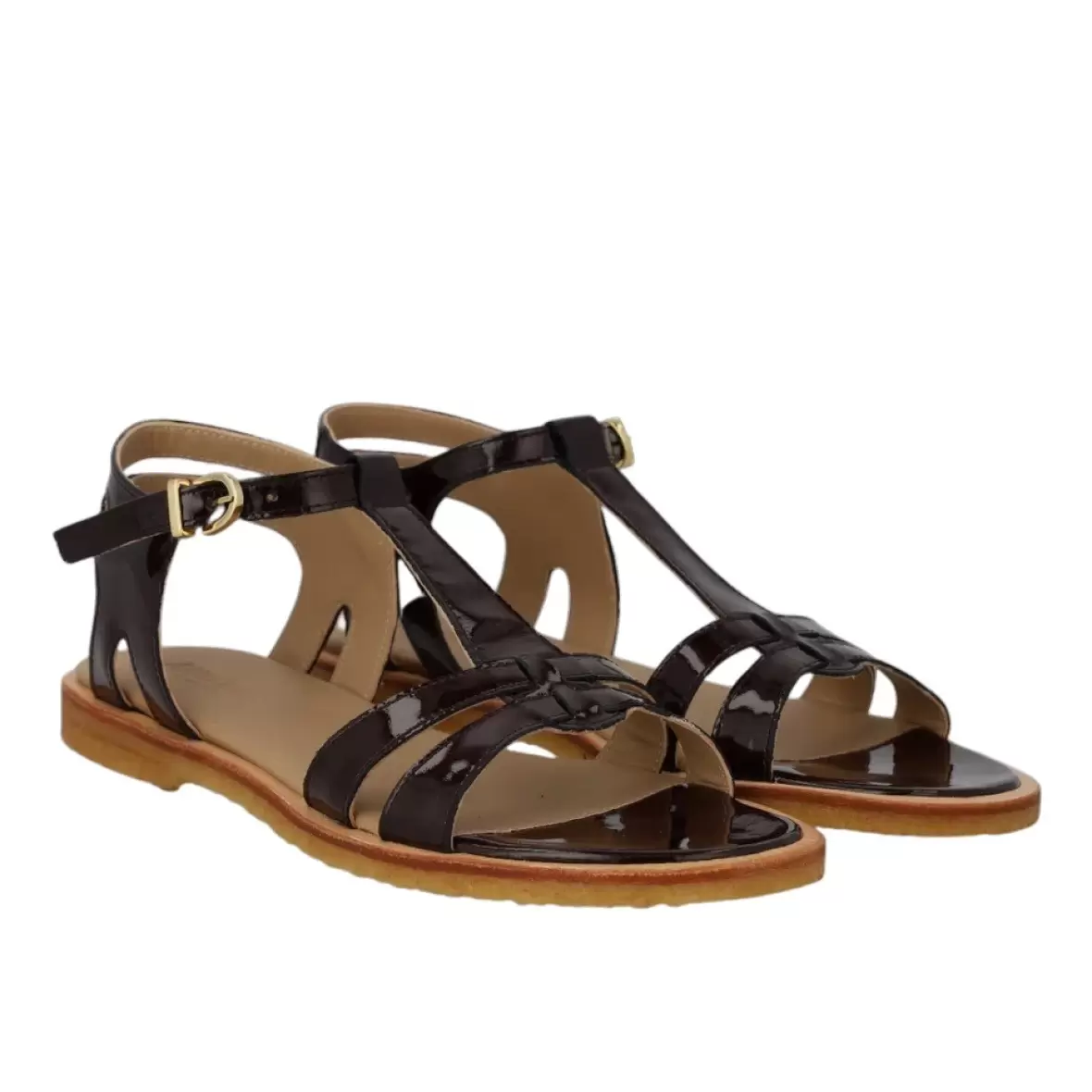 Overdelen er fremstillet i lækkert lakskind, som giver en flot glans og et eksklusivt udtryk, samtidig med at materialet er slidstærkt og former sig behageligt efter foden. Den justerbare ankelrem med spænde sikrer en god pasform og stabilitet, så sandalen sidder sikkert hele dagen.