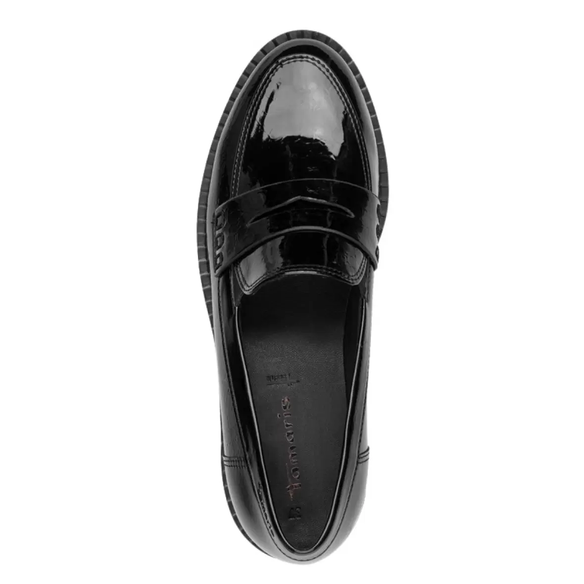 Art. No. 1-24312-41 087Disse smarte loafers fra Tamaris kombinerer et klassisk og elegant udtryk med høj komfort, hvilket gør dem perfekte til både hverdag og arbejde. Skoene er udført i sort laklook, der giver et stilrent og moderne præg, mens den markante sål tilfører et trendy touch og samtidig sikrer god stabilitet. Den bløde indersål gør skoene behagelige at have på hele dagen, og den lave hæl giver en afslappet pasform uden at gå på kompromis med stilen. Et oplagt valg til dig, der ønsker pæne sko, som både kan styles med bukser, nederdel eller kjole – og som samtidig føles rare at gå i.