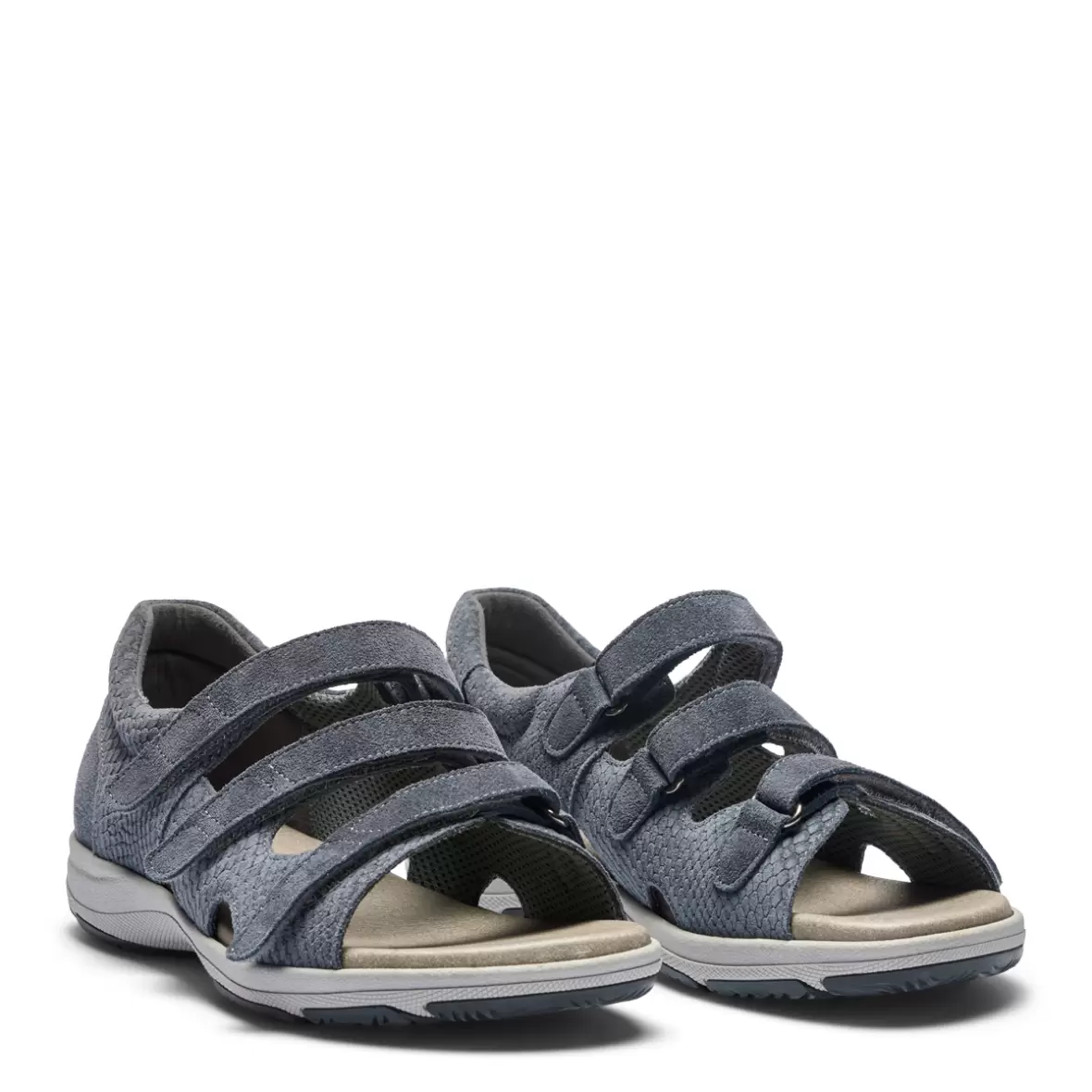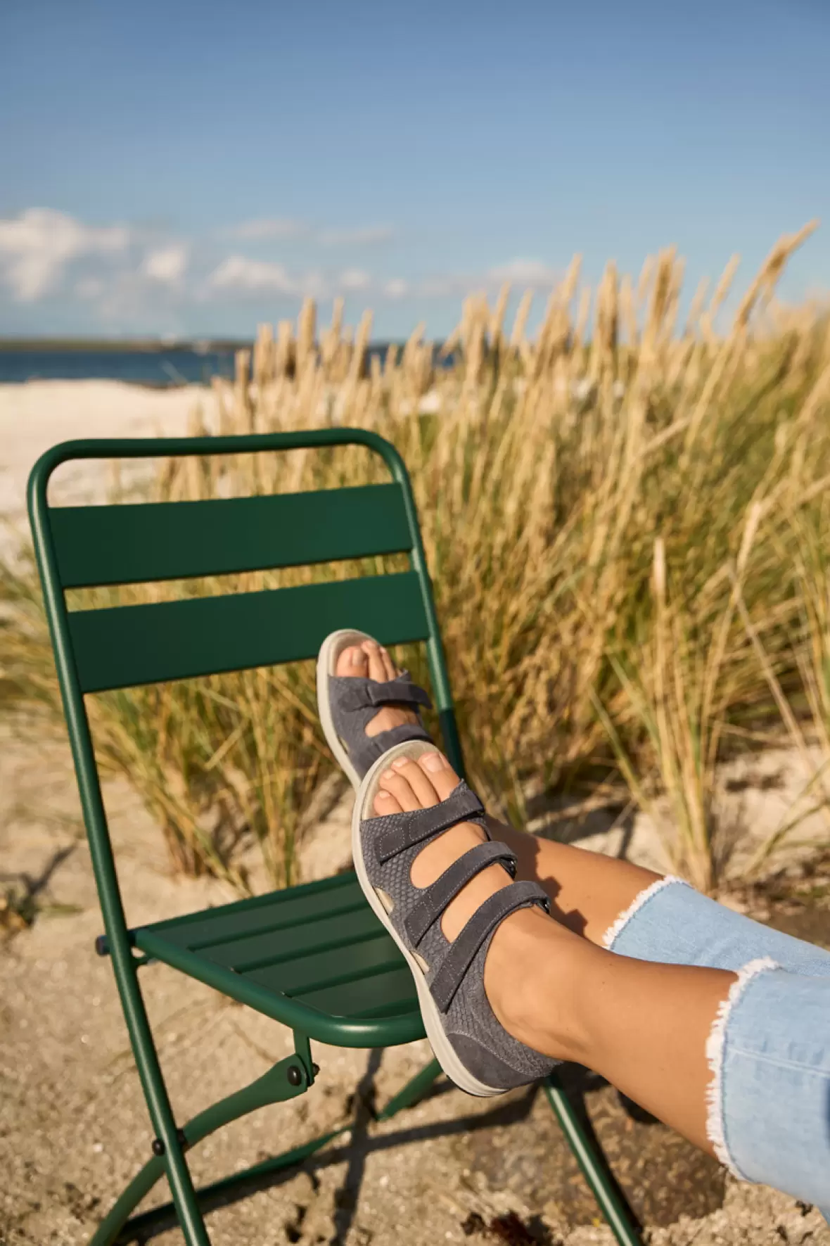Art. No. 211-35-1942New Feet 211-35-1942 er en komfortabel og funktionel sandal i ekstra bred pasform, designet til dig, der ønsker optimal støtte og god plads til foden. Sandalen har tre justerbare velcrostropper, som gør det nemt at tilpasse pasformen individuelt, mens den lukkede hælkappe sikrer stabilitet og god støtte omkring hælen. Overdelen er udført i blødt materiale, der føles behageligt mod foden og giver et sporty, men diskret udtryk. Den lette ydersål i TR-materiale har et godt greb og en let rockerfunktion, som bidrager til en naturlig og aflastende gang. Indvendigt er sandalen udstyret med en udtagelig 6 mm Protektor® indlægssål med stødabsorberende effekt, hvilket gør den velegnet til både hverdagsbrug og længere gåture. En ideel sandal til dig, der prioriterer komfort, stabilitet og funktion i hverdagen.