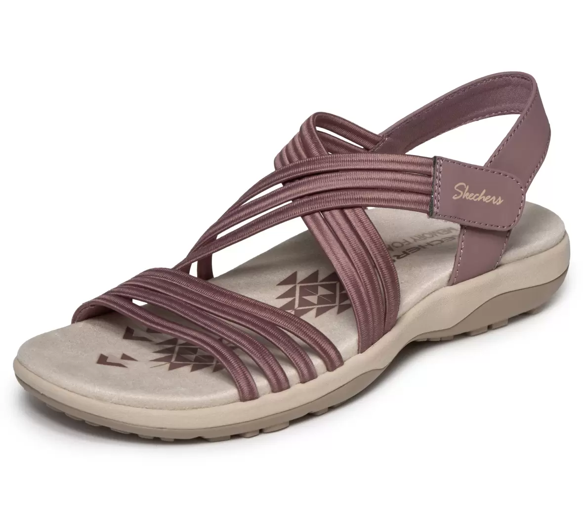 Art. no. 164036 MVESkechers Reggae Slim Sunnyside 2.0 er en smart og behagelig damesandal, der kombinerer et let, feminint udtryk med høj komfort til hverdagsbrug. Sandalen er designet med flere elastiske stropper, som smyger sig blødt om foden og giver en fleksibel og behagelig pasform. Den justerbare hælrem sikrer, at sandalen sidder stabilt, samtidig med at den er nem at tage af og på. Indersålen er blødt polstret og formet, så den støtter foden hele dagen, mens den lette og stødabsorberende ydersål giver god komfort og stabilitet på både korte og lange gåture. En ideel sandal til sommeren, hvor du ønsker både komfort, bevægelsesfrihed og et stilrent look.