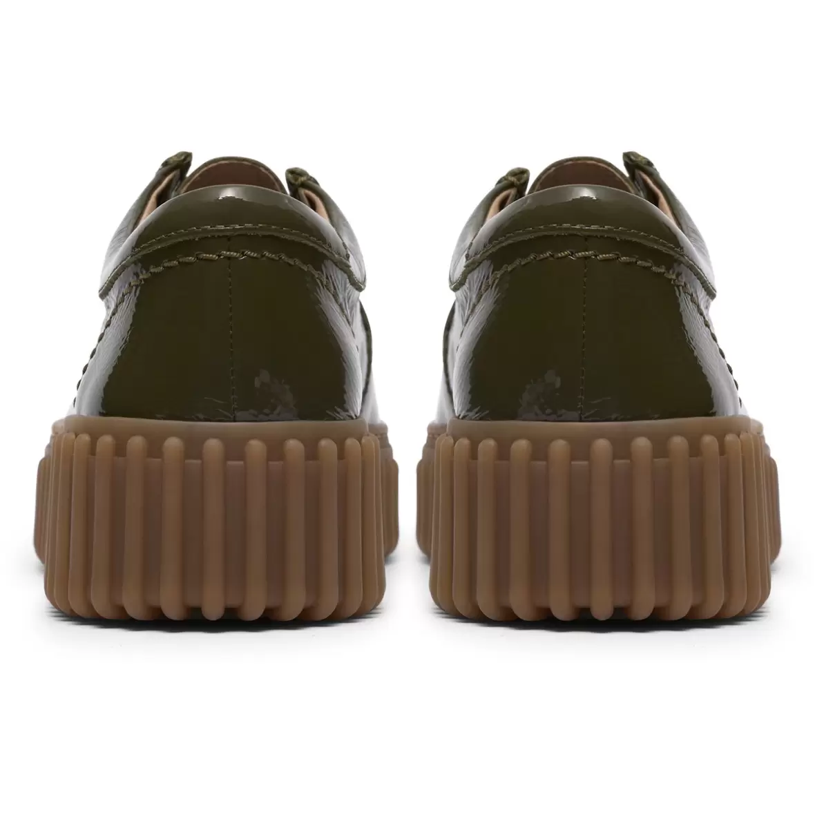 Art. no. CL26186668-3223Clarks Torhill Bee D er en moderne og karakterfuld sko, der kombinerer klassisk design med et chunky og trendy udtryk. Den blanke overdel i mørk olivengrøn giver et unikt og stilfuldt look, som skiller sig ud og tilfører kant til ethvert outfit.