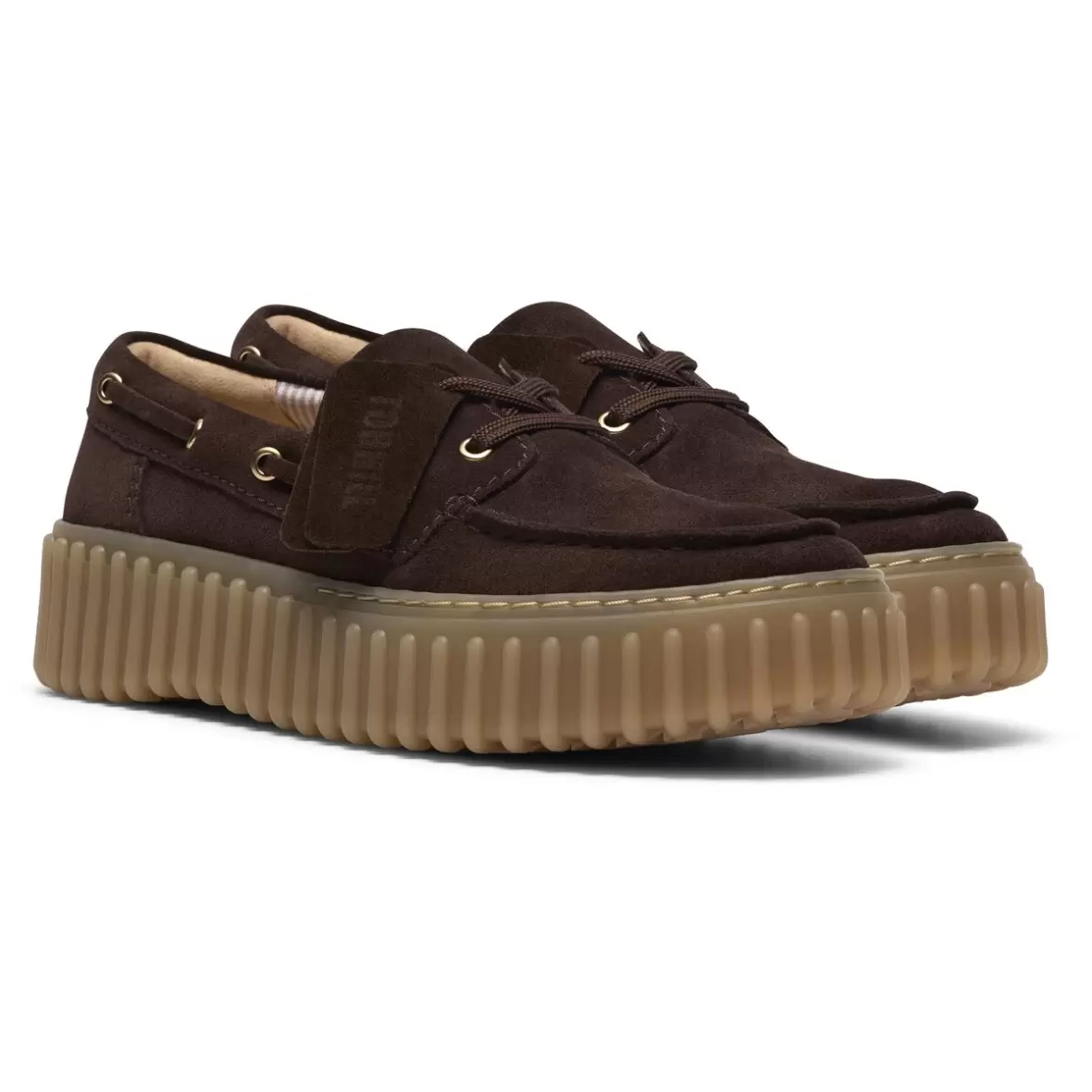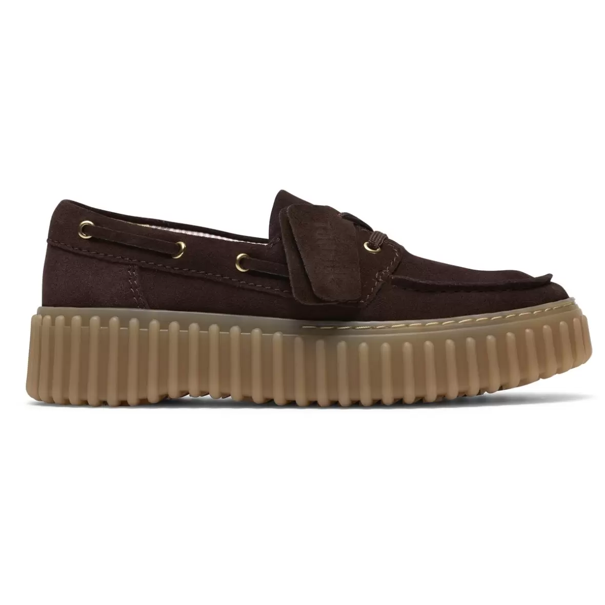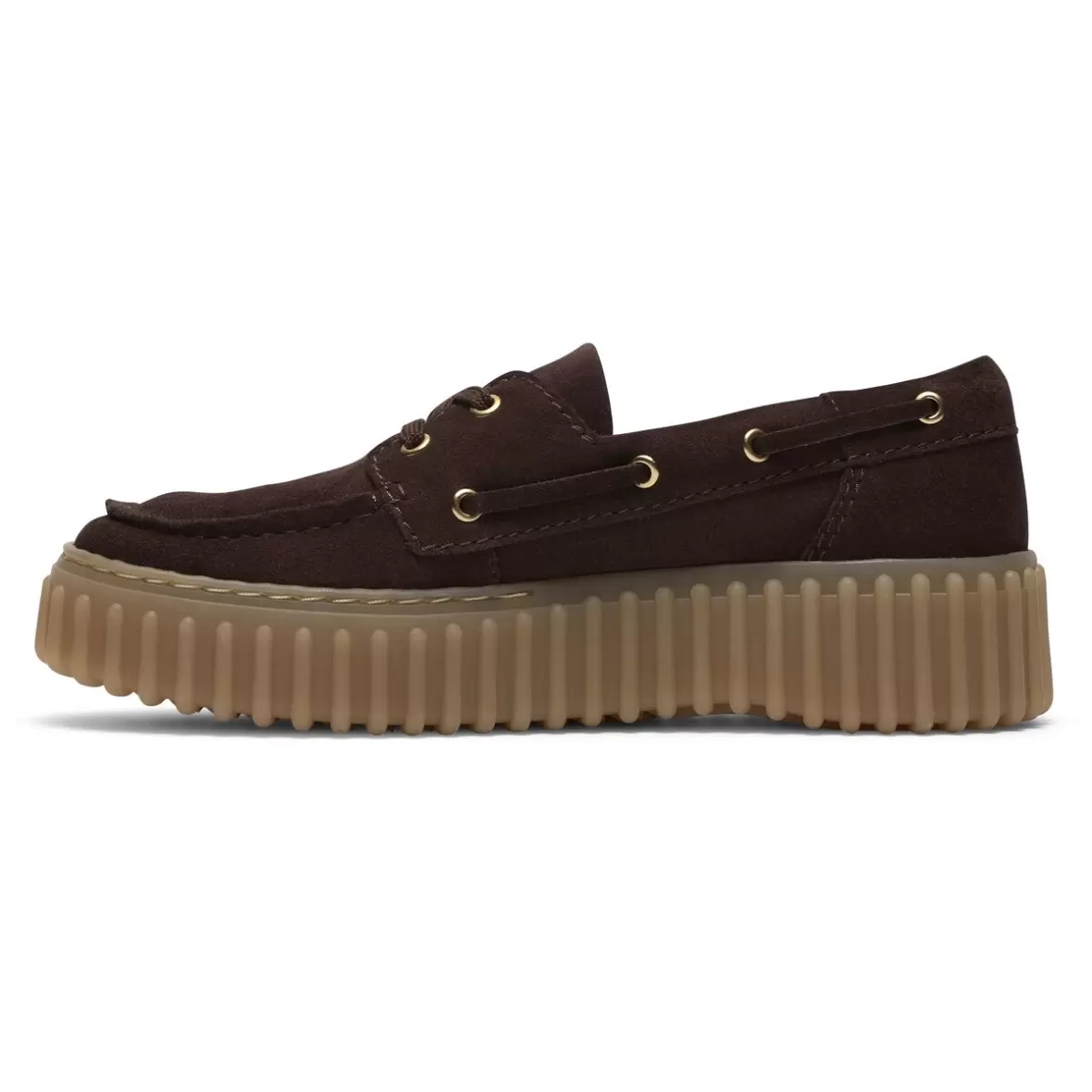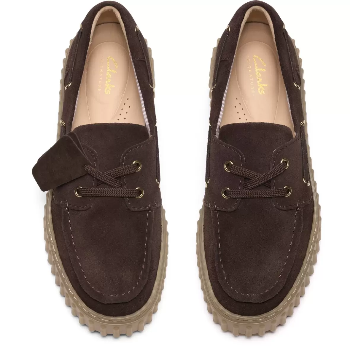 Art. No. CL26186647-5230Clarks Torhill Boat D er en moderne fortolkning af den klassiske sejlersko, hvor tidløst design møder et markant og nutidigt udtryk. Den mørkebrune overdel i blødt ruskind giver et eksklusivt og afslappet look, som passer perfekt til både hverdagsbrug og mere stilfulde outfits.