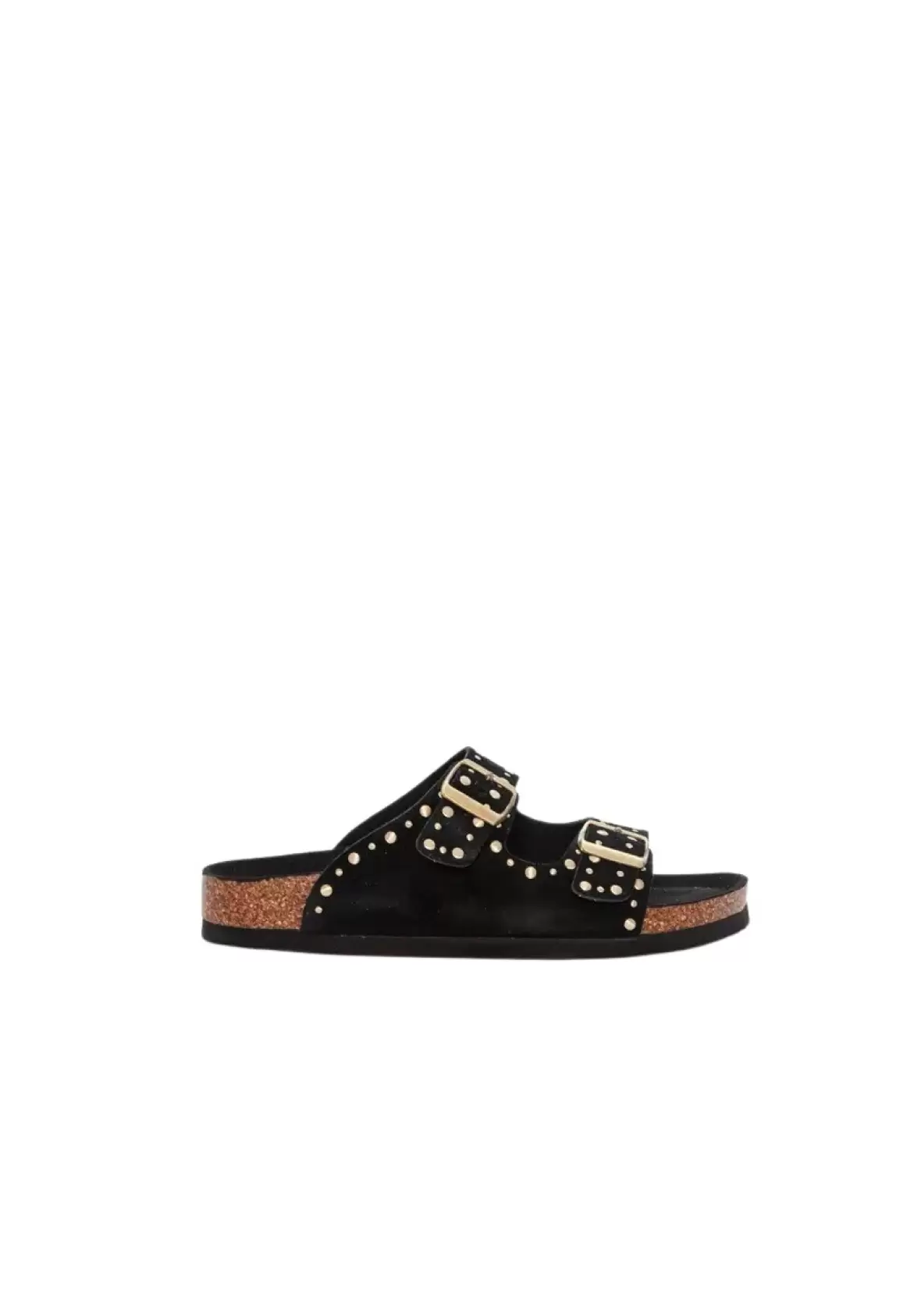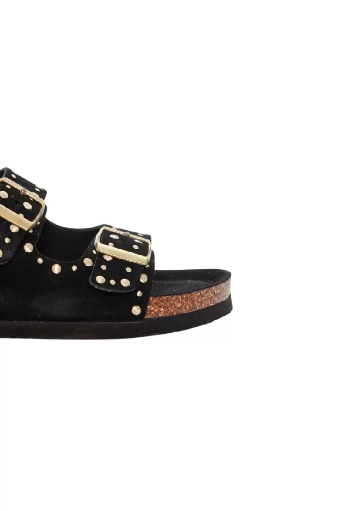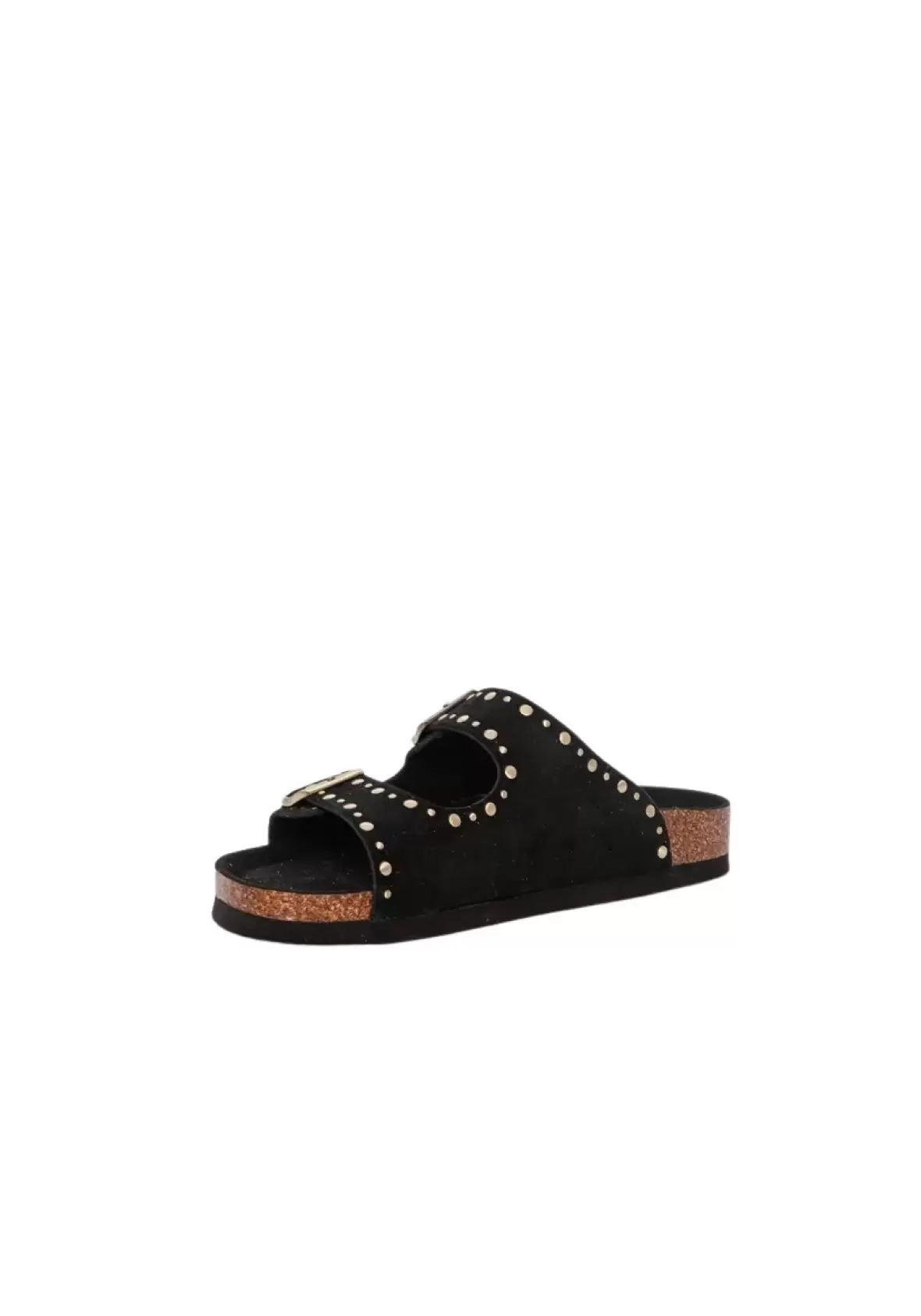 Art. No. 8645008-01Disse smarte slipper-sandaler fra Duffy kombinerer et råt og feminint udtryk med høj komfort – perfekt til sommerens afslappede outfits. Det stilrene design fremhæves af de brede remme, som er pyntet med dekorative nitter og spænder, der giver sandalen et moderne og edgy look.