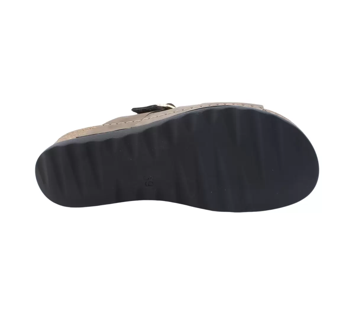 Den bløde indersål sikrer en behagelig følelse under foden, mens den lette sål med kork-look giver god affjedring og støtte i hverdagen. Ydersålen er samtidig fleksibel og giver et stabilt fodfæste, så sandalen er behagelig at gå i hele dagen.