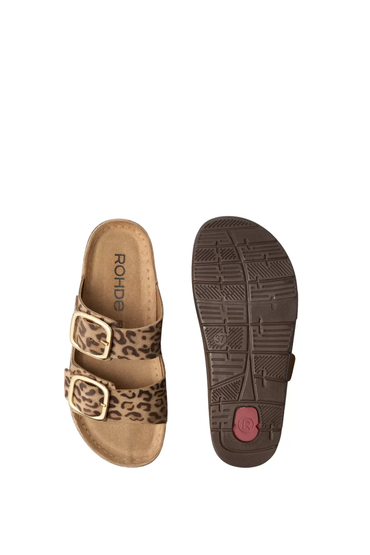 Art. No. 5890-18Rohde Rodigo-D 5890-18 er en smart og moderne slippersandal til damer, der kombinerer komfort med et trendy udtryk. Det flotte leopardmønster giver sandalen et stilfuldt og iøjnefaldende look, som nemt kan pifte ethvert sommeroutfit op – uanset om du styler den med jeans, shorts eller en let kjole.