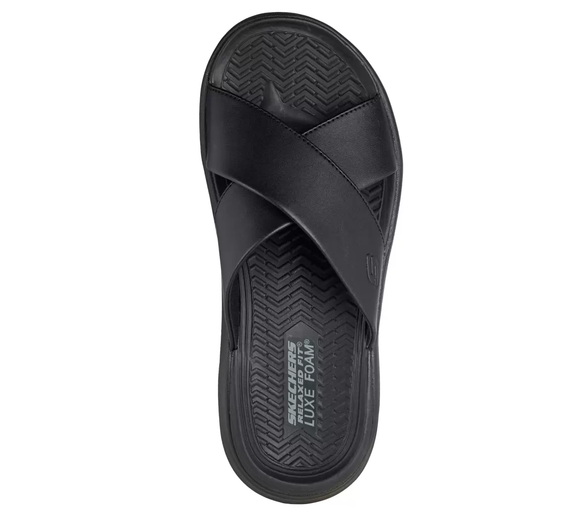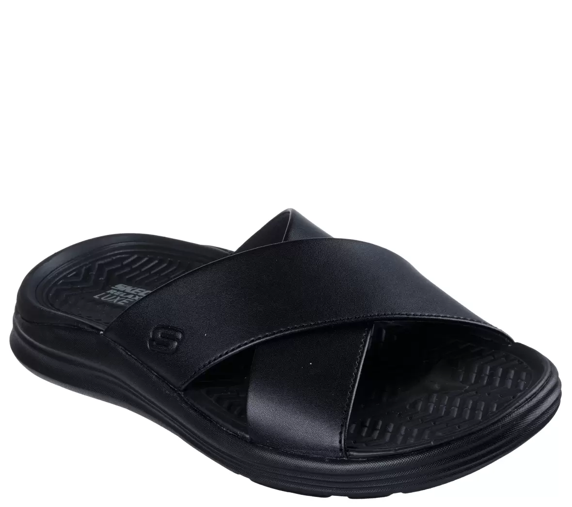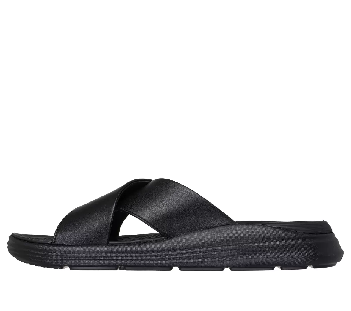 Art. No. 205627 BBKSkechers Relaxed Fit: Sargo er komfortable og afslappede slipper-sandaler til herrer, der kombinerer et enkelt, maskulint design med høj komfort i hverdagen. Sandalen er udført i sort med brede, krydsede remme i blødt materiale, som giver en behagelig pasform og holder foden stabil uden at stramme. Den polstrede fodseng former sig efter foden og sikrer god støtte, mens den lette og fleksible sål giver en blød gangoplevelse, både inde og ude. Med Relaxed Fit-pasform er der ekstra plads, hvilket gør sandalen ideel til lange dage, afslapning og ferier, hvor komfort er i fokus.
