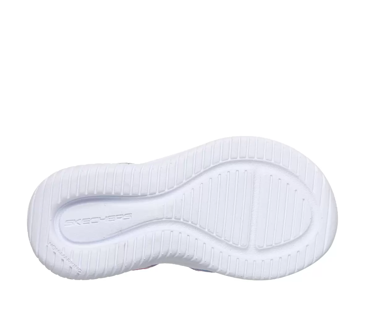 Art. No. 303109N LVMTSkechers Jumpsters Sandal Butterfly er en let og farverig sandal til børn, der kombinerer komfort med et legende design. Sandalen er udført i bløde materialer med en fleksibel sål, som giver god bevægelsesfrihed og støtte til små fødder hele dagen. De justerbare velcrostropper gør den nem at tage af og på og sikrer samtidig en god pasform. Det fine sommerfuglemotiv med lys tilfører et ekstra sjovt element, som børn vil elske, mens den stødabsorberende bund bidrager til en behagelig gang – perfekt til både leg og sommerens mange eventyr.