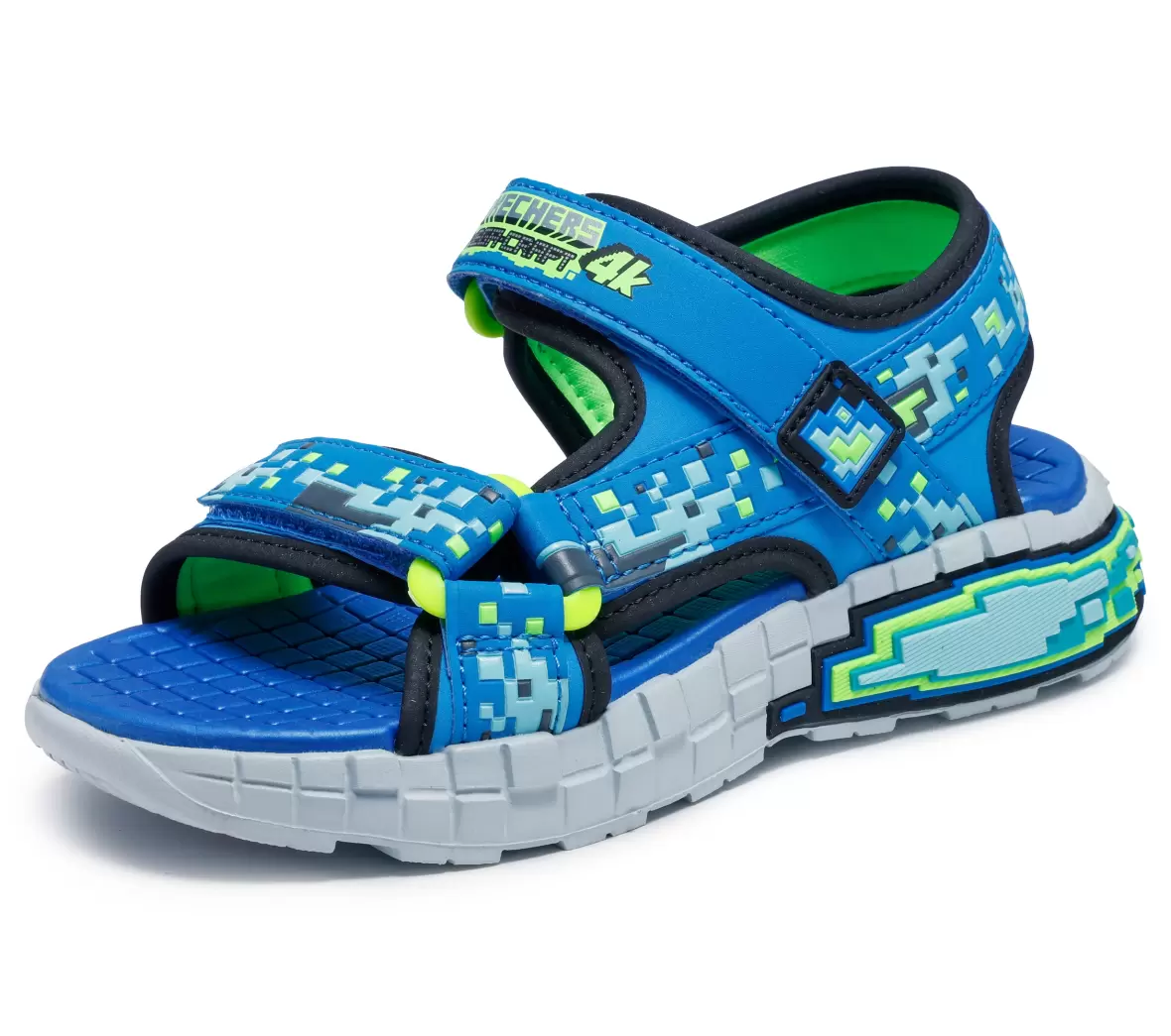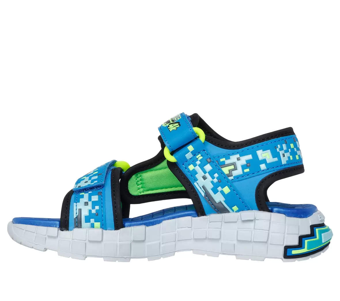 Art. Nol. 402161L BBLMSkechers Mega-Splash 4K er smarte og funktionelle sandaler til børn, der kombinerer legende design med høj komfort. De blå nuancer og de seje pixel-inspirerede detaljer giver sandalerne et sporty og energisk udtryk, som passer perfekt til aktive sommerdage. De justerbare velcroremme gør det nemt at få sandalerne af og på, samtidig med at de sikrer en god og stabil pasform omkring foden.