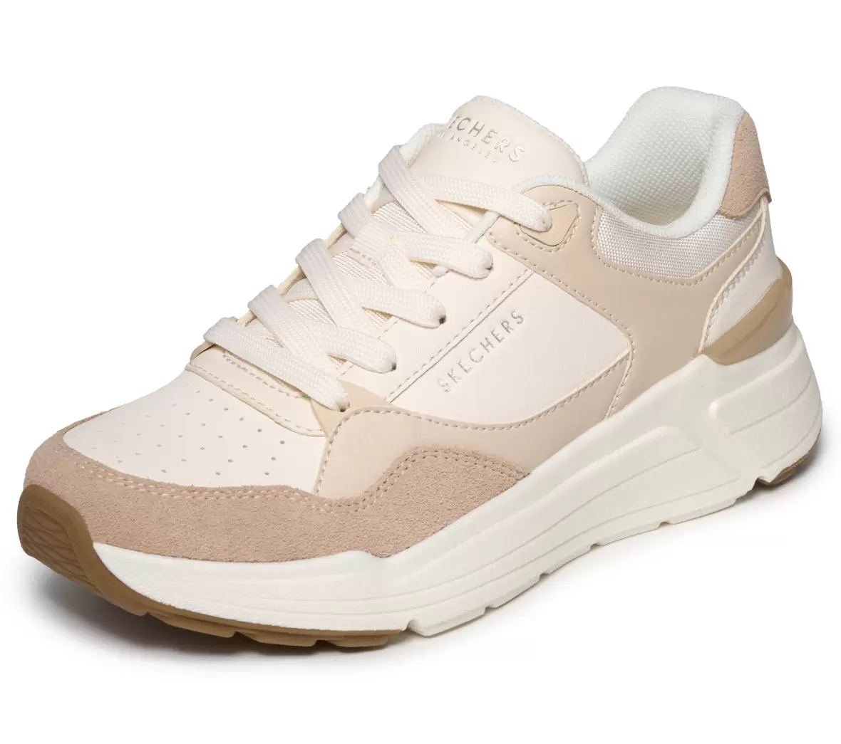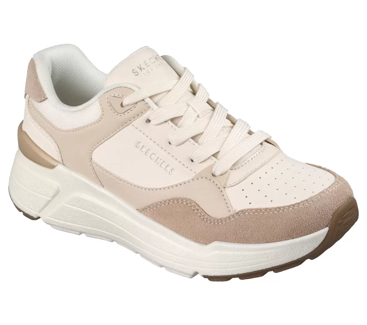 Art. No. 190133 NTMTDisse stilrene sneakers fra Skechers kombinerer moderne design med god komfort og er et oplagt valg til hverdagsbrug. Modellen har et feminint og tidløst udtryk i lyse nuancer, hvor beige og cremefarvede detaljer giver skoen et elegant og afslappet look, der nemt kan matches med både jeans, kjoler og casual outfits.