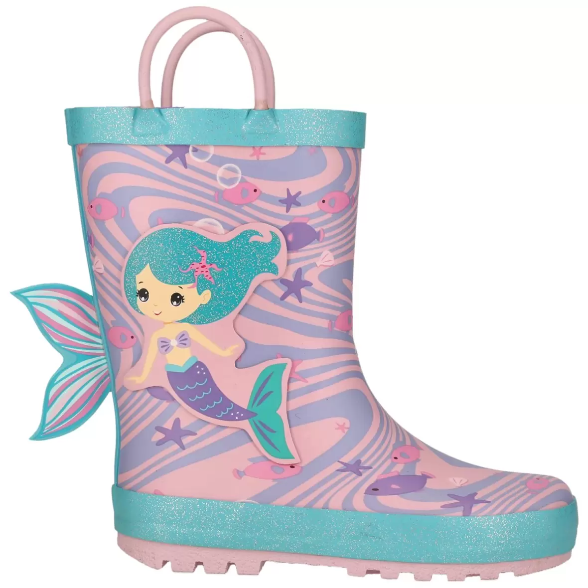 Det søde havfrue-design med fine detaljer giver støvlen et legende og eventyrligt udtryk, som mange børn vil elske. Samtidig er støvlen udstyret med praktiske håndtag øverst, så barnet nemt selv kan tage den af og på, hvilket gør den ideel til både hverdag og institution .