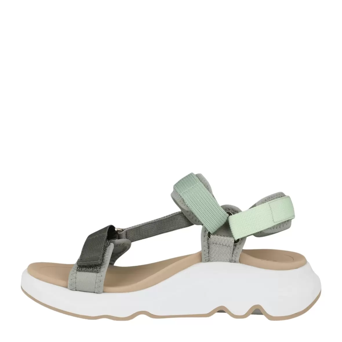 Den chunky, bølgede sål giver ikke kun et moderne udtryk, men også et godt greb og stabilitet. Designet er rummeligt og velegnet til dig, der ønsker lidt ekstra plads eller har brug for en sandal, der ikke strammer.