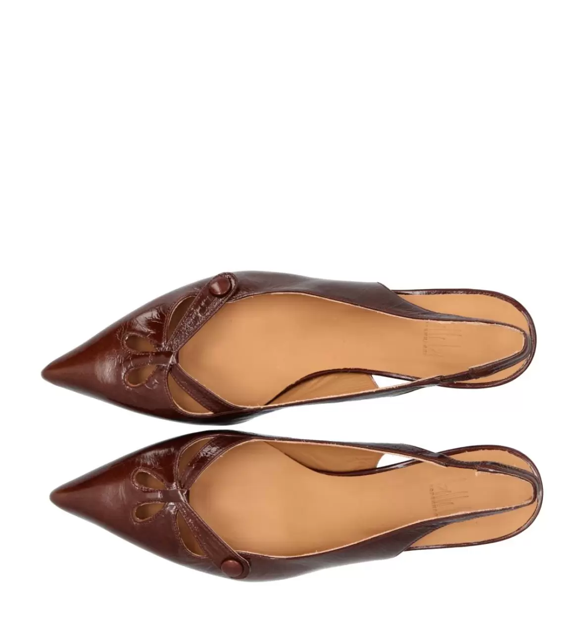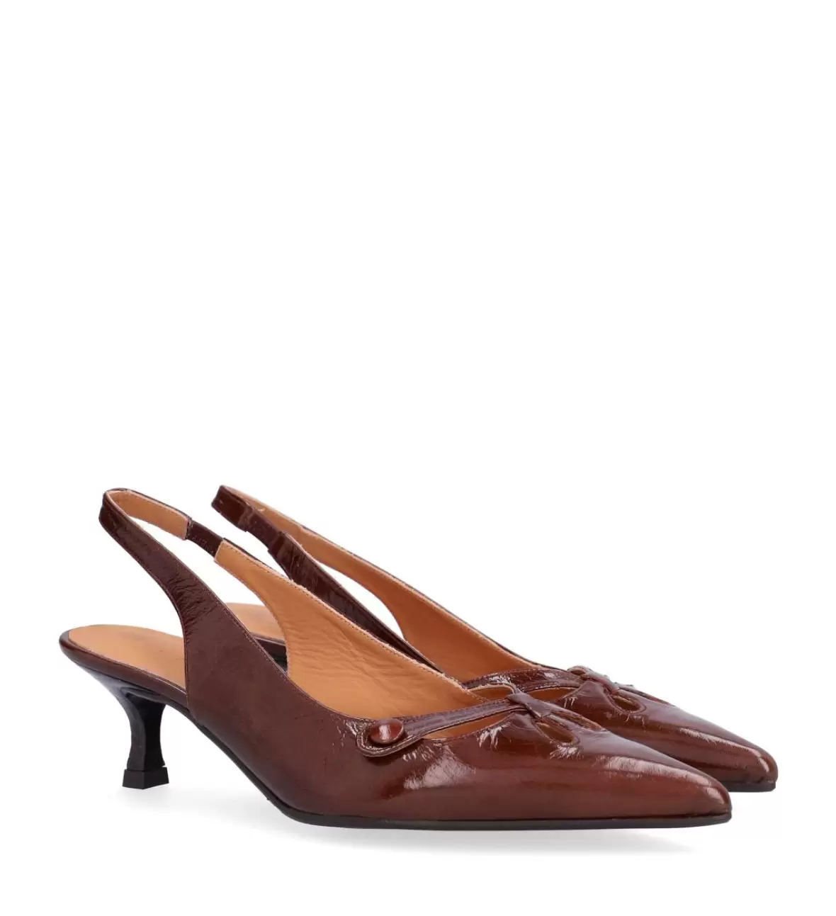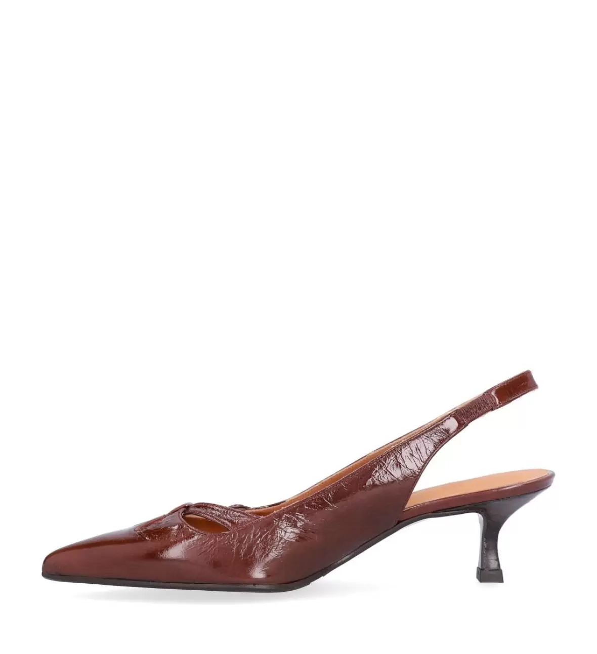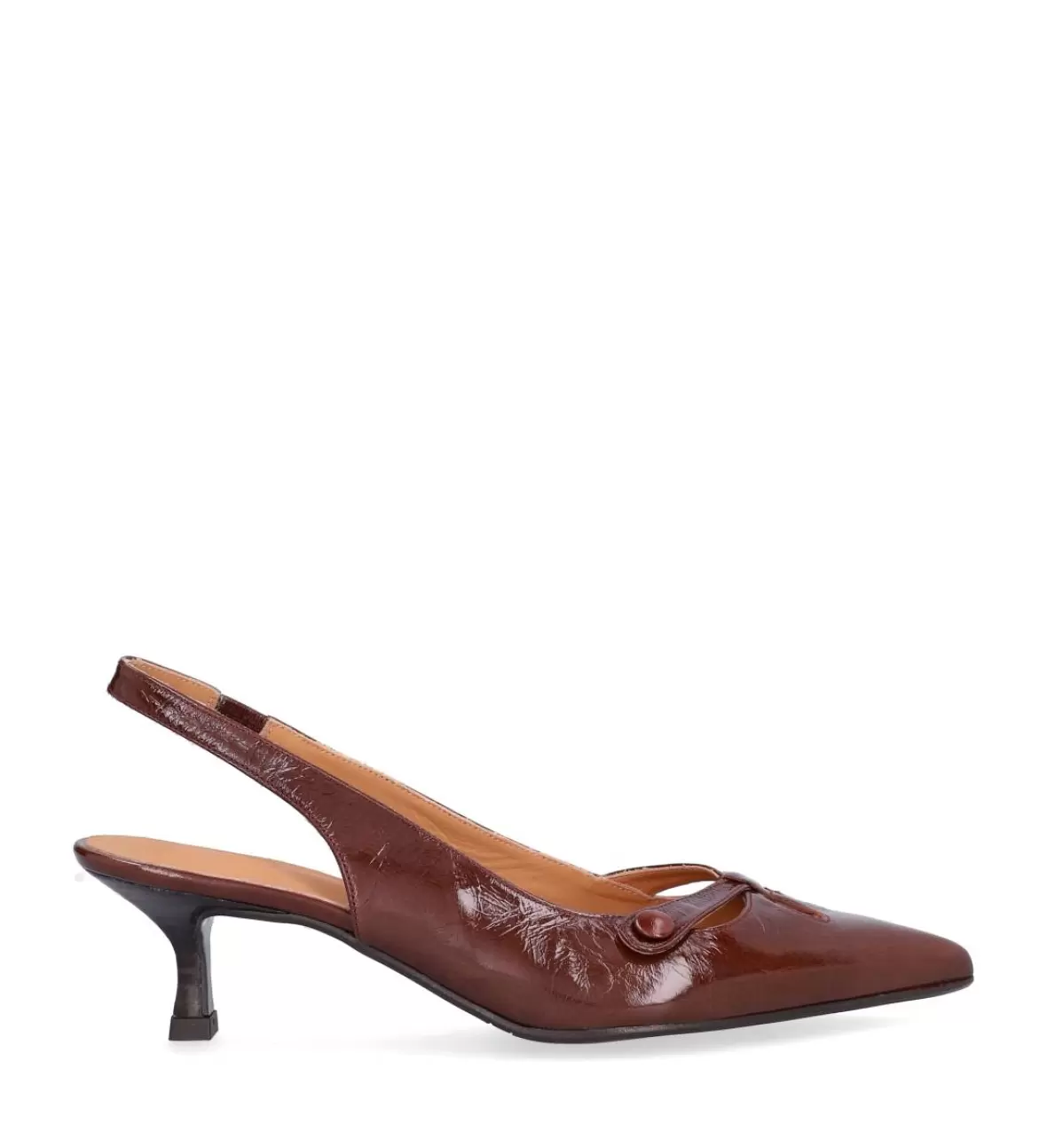 Art. No. A8091-265Billi Bi CASTAGNO A8091-265 er en elegant og feminin slingback-pumps til damer, der kombinerer klassisk design med moderne detaljer. Skoen er fremstillet i smukt, lakeret læder i en varm castagno-brun nuance, som giver et eksklusivt og stilfuldt udtryk. Den spidse snude skaber en elegant silhuet og giver samtidig et sofistikeret look, der forlænger benets linje.